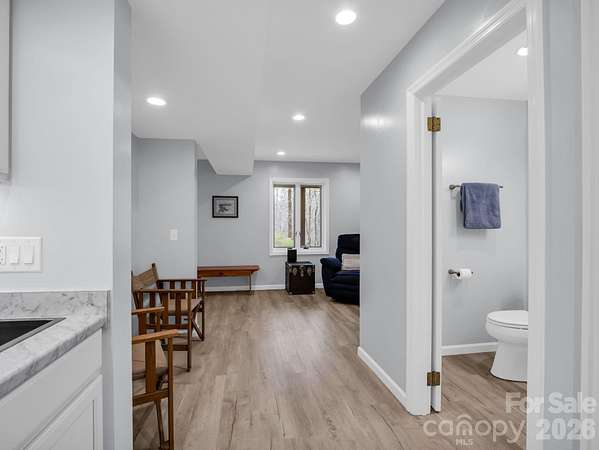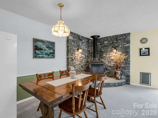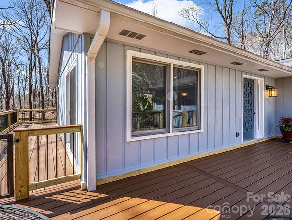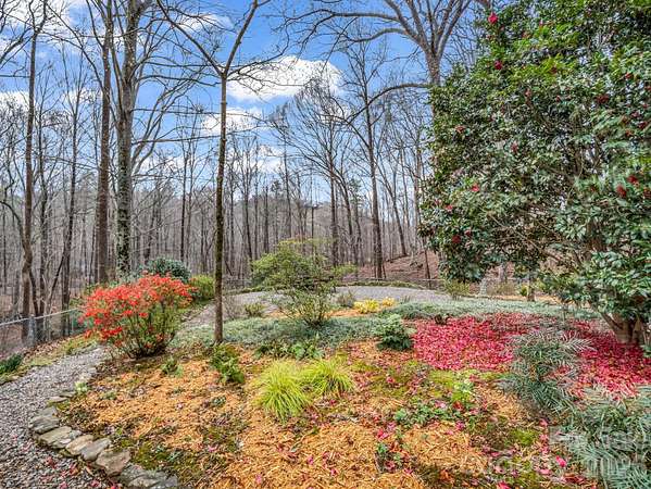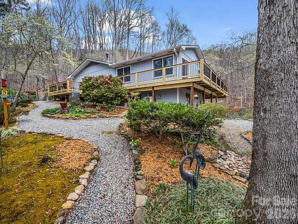 First time on the market, this meticulously maintained ranch-style home offers a rare opportunity to enjoy privacy, natural beauty, and flexible living space on 11.43 acres in Columbus, North Carolina. Tucked away in a peaceful setting, the home is move-in ready and filled with natural light from large windows, skylights, and sliding glass doors that bring the outdoors in. The main level features a spacious living room that flows easily into the dining area and kitchen, creating a comfortable and connected layout for everyday living. The kitchen is a standout feature, complete with a breakfast bar and a beautiful stone hearth with a wood-burning stove, adding warmth, character, and a cozy gathering space. Down the hall, you'll find a comfortable guest bedroom and full bath with a convenient stackable washer and dryer. The primary suite offers a quiet retreat with an ensuite bath and custom built-in shelving and cabinetry for added storage and character. The lower level expands the home's versatility with a generous flex space that includes a full bath and kitchenette with sink and refrigerator. Whether you envision a family room, home gym, office, studio, or guest area, this space adapts to your needs. Outdoor living is just as impressive. Step onto the brand new 790 square foot Trex composite wrap-around deck, accessible from both the living room and kitchen, and enjoy views of the thoughtfully designed perennial gardens. Stone walls, terraced beds, and winding stone paths create a landscape that feels both curated and natural. A mountain-fed stream runs through the property, adding to the peaceful setting. While the property offers exceptional privacy and a sense of retreat, it is conveniently located just minutes from Columbus, Tryon, and Interstate 26, providing easy access to shopping, dining, and regional travel. A well-cared-for home, beautiful acreage, flexible living space, and a natural setting that is hard to find all in one place.