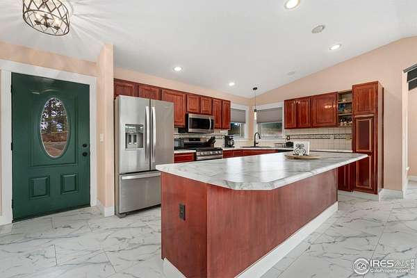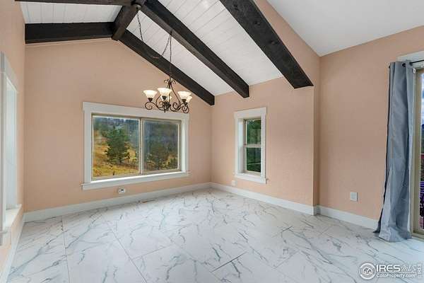 F11/L82A-Welcome to your mountain getaway, where year-round accessibility meets modern updates & peaceful mountain living. Nestled on nearly 2.5-acres with greenbelt buffers & elevated views of the North Fork of the Cache La Poudre River, this beautifully renovated home offers the perfect blend of comfort, convenience & nature. Step inside from the circle drive to find a fully updated main floor featuring new flooring, fresh paint, modern appliances, updated patio doors & stylish bathroom fixtures. The open-concept great room boasts a spacious kitchen with large island & custom pantry, a cozy dining nook surrounded by windows, & a relaxing living area with custom built-ins & breathtaking valley views. Step out on the large deck to fully appreciate the location & panoramic vistas of the river and abundant wildlife that frequent the area. The main floor primary suite includes deck access, a large walk-in closet & a luxurious ensuite with a custom, oversized walk-in shower with two shower heads & double vanities. A second bedroom & nearby half bath provide comfort & privacy for guests or even a conveniently located office. The laundry/mud room connects directly to the two-car attached oversized garage, complete with a built-in workshop or "man cave". True one-level living is possible here. However, the walk-out lower level expands your living space with two distinct areas-one with a wood-burning stove, portable hot tub, & second living room plus another ready for your imagination: office, craft room or game room plus a 3/4 bath. An unfinished section offers ample storage & houses the home's updated systems, including a newer furnace with humidifier, water heater & A/C. Outside, finds two storage sheds, a community-approved firepit, & endless opportunities for wildlife watching, stargazing, & sunset views. With a well, full septic system, & soil treatment area + built-in radon system, this home is ready for full-time living or a luxurious mountain getaway.