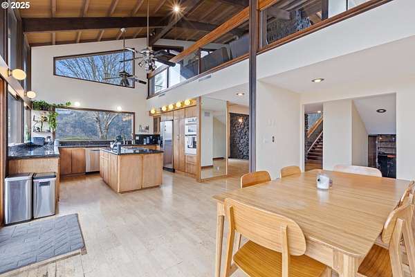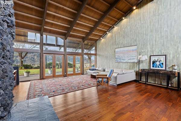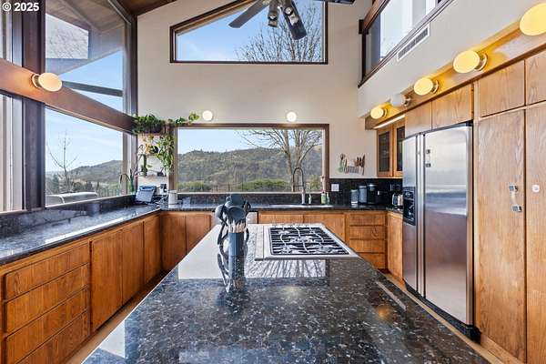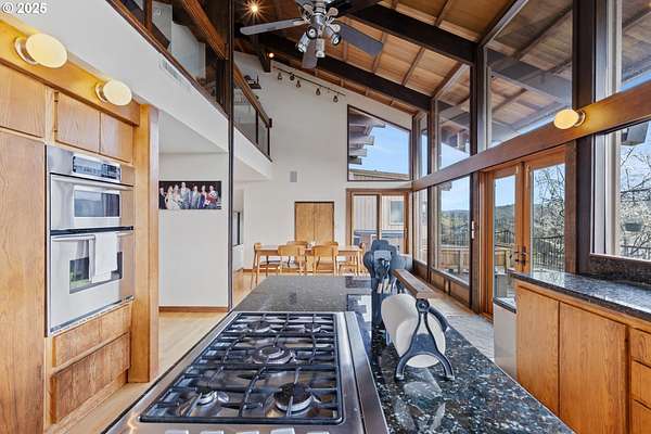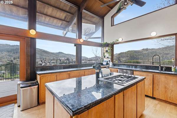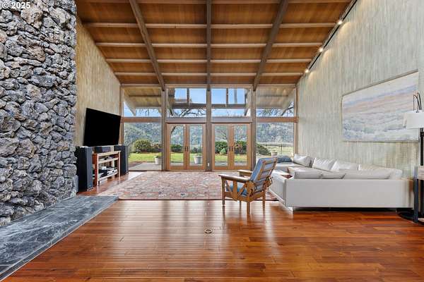 This stunning custom-built estate spans 22.66 acres and offers breathtaking views of the iconic North Umpqua River. Perfectly positioned above Winchester Dam, the property provides ideal access for boating, swimming, paddle boarding, and world-class fishing. Designed for both relaxation and entertaining, the home welcomes you with a grand entry and opens to an expansive deck showcasing unobstructed river views. Outdoor living is elevated with an in-ground pool and a newly remodeled, fully self-contained 911 sq ft pool/guest house-perfect for guests, extended family, or private retreats. Inside, timeless charm meets modern comfort with soaring ceilings, gorgeous hardwood floors, and walls of windows that flood the home with natural light. The spacious kitchen features stainless steel appliances, a large island, and flows seamlessly into a formal dining area. The grand living room offers a bright and inviting atmosphere, while a separate cozy family room provides additional space to relax. The oversized primary suite is a true retreat with incredible river views and private deck access. Car enthusiasts and hobbyists will appreciate the impressive five-car garage. The property also offers exceptional development potential. All 22.66 acres are zoned R-1 (minimum 1-acre lots), with sewer and power available at the lower property line and UBW located above the road. Several beautiful view lots have already been created, with additional potential along the backwater. Established roads run throughout the property, making future development even more accessible. Whether you're seeking a luxurious riverfront retreat, a private family estate, or a rare investment opportunity, this remarkable property offers endless possibilities.