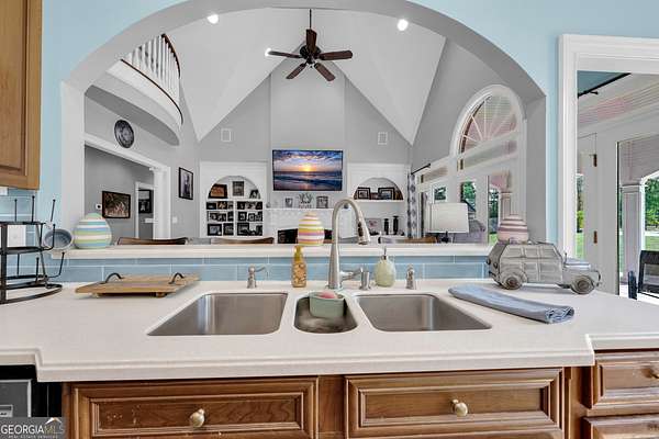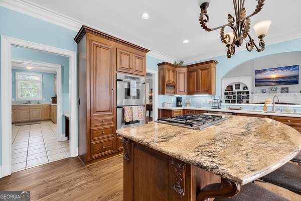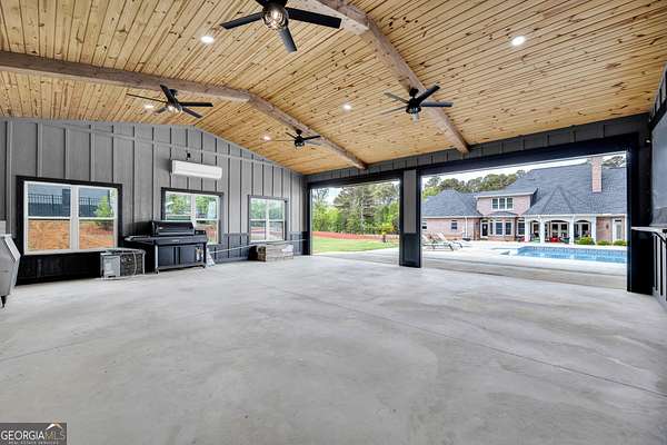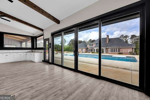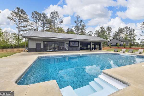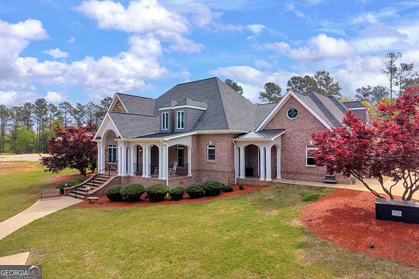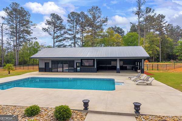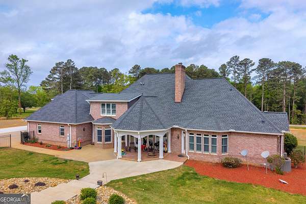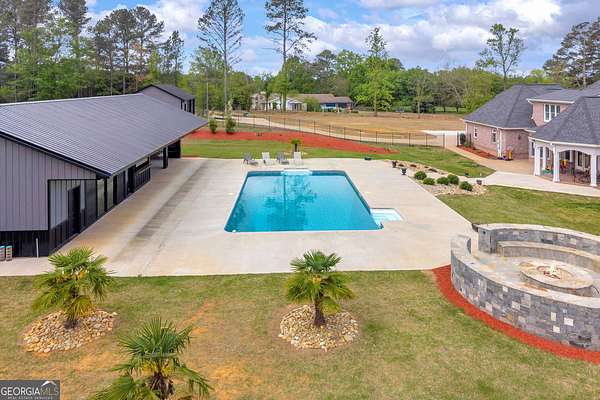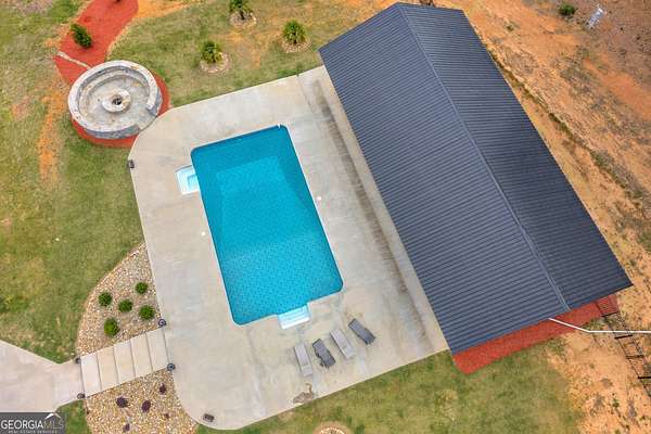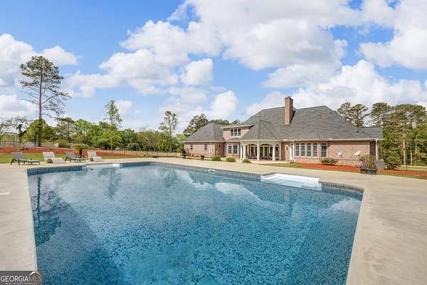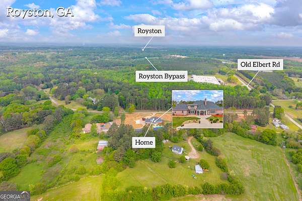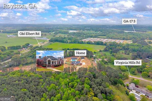 Custom-Built Estate on 3.5 Acres with Resort-Style Pool & Guest Pool House in Royston. Homeowner's dream doesn't begin to cover it-this one is custom everything with room to live, entertain, and truly enjoy your space. From the moment you enter through the grand double foyer, you're greeted with soaring ceilings, extensive custom crown molding throughout, and a stunning two-story great room featuring arched openings to the kitchen and upper level. The living area is anchored by a beautiful fireplace with custom built-ins, detailed mantel, and granite surround. The chef's kitchen is fully equipped and thoughtfully designed with a large granite island, double ovens, gas cooktop, under-counter ice maker, and a deep 3-bowl sink with disposal. Custom cabinetry includes built-in organization features-including a swept-up vacuum system. A bay breakfast area, butler's built-ins, and a spacious walk-in pantry. The main level also features a private office with custom built-in desk, 1 large laundry room with abundant cabinetry, convenient mail/drop zone at garage entry and two powder rooms for guests, thoughtfully placed on each side of the home. The Owner's Suite is a true retreat-featuring double trey ceilings, a private sitting area with patio access, and an oversized custom closet with dual-sided organization. The spa-like bath includes split vanities, a dedicated makeup station, jetted tub, and tiled shower. Upstairs offers flexible living space perfect for today's lifestyle: Open loft ideal for a game room or secondary living area, two spacious teen suites with built-ins and private full baths as well as a large workout room. Step outside and the property truly shines-this is your private backyard resort. Enjoy a beautiful in-ground pool paired with an impressive, oversized pool house designed for entertaining and extended living. The pool house features a full kitchen and living area, private bedroom and full bath, as well as an outdoor kitchen space with Roll-up doors that open the space for seamless indoor/outdoor entertaining .Car enthusiasts and hobbyists will love the 5-car garage capacity: 3-car attached garage with friends' entrance and storage, and a 2-car detached garage with workshop or craft space. Outdoor living continues with a front porch and back patio featuring custom wood ceilings, columns, and tile flooring, plus a sprinkler system to maintain the beautifully kept 3.5-acre property. Located in a small neighborhood with no HOA, this home offers privacy, space, and high-end custom details throughout. Properties like this-with acreage, a luxury pool setup, and a fully equipped pool house-are hard to find. Schedule your private showing today.