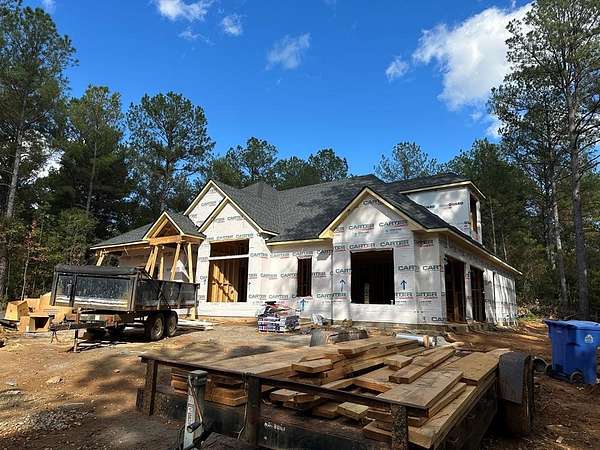 Luxurious custom home on 2.34 acres loaded with high-end features and amenities with a harmonious blend of craftsmanship and natural beauty. The family room has vaulted ceilings displaying the solid wood beams adding a rustic & elegant touch & featuring a custom designed fireplace adding warmth & ambiance to the room. Enjoy the formal dining room with 12 ft ceilings adorned with a wall of windows allowing sunlight to filter in & open to the exquisite kitchen with unique amenities offering functionality for cooking, dining & entertaining. Experience the sleek, modern look of solid surface counters & custom backsplash, mix of stained & painted wood cabinetry featuring soft-close hinges and built-in organizers to maximize storage & top-of-the-line appliances. Focal point of the kitchen is the large center island with solid surface top, sink area that is a functioning work station & pendant lighting. Master suite is a private, cozy retreat where you can relax, rejuvenate, and escape from the stresses of daily life. It promotes relaxation, comfort, and privacy by incorporating soft, ambient lighting, specialty ceiling & an ultimate showering experience. Bedroom 2 utilizes a shared bathroom that is also accessible from the hallway providing convenience and accessibility for family & guests. Bedrooms 3 & 4 ensure convenience and functionality sharing the Jack & Jill bathroom. Each bedroom has its own walk-in closet. Bedroom 5 is upstairs and provides privacy and separation from the rest of the home and accompanied with a full bath adding versatility. Contemporary slider doors create a seamless transition between indoor and outdoor spaces & exits to the back porch grilling area with fireplace. 2 car garage. The showroom is ready for you to view this 5 bed/4.5 bath exact plan with 3500SF to make it your home in Harris county. {sketch and plan shown is a close sample}