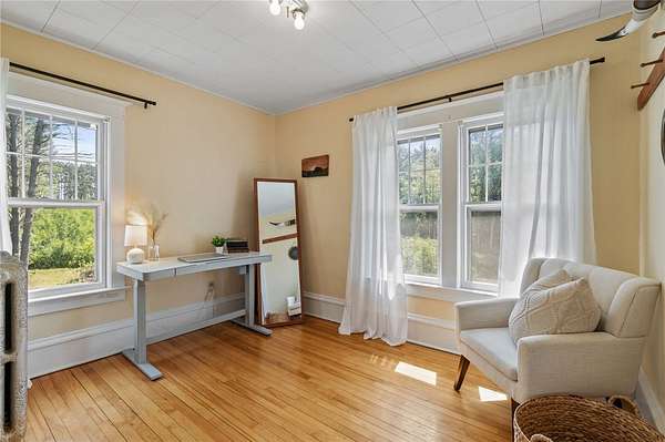 If you've been dreaming of space, serenity, and character, this is the home for you. Nestled on seven quiet, tree-lined acres, this charming 1950s two-story combines mid-century style with modern comfort. Featuring four generously sized bedrooms and two full baths, the home is filled with natural light and timeless details. A new boiler (2022) and roof (2024) offers peace of mind, and every window frames your private, scenic surroundings. Start your mornings or unwind in the evening on the oversized front porch, perfect for taking in the beauty and quiet of the countryside. This is country living at its finest-come experience it for yourself!