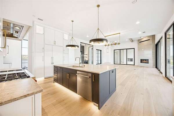 - Built-In Features, Built-In Wine Cooler, Cable TV Available, Chandelier, Decorative Lighting, Double Vanity, Dry Bar, Eat-In Kitchen, Granite Counters, High Speed Internet Available, In-Law Suite Floorplan, Kitchen Island, Loft, Open Floorplan, Pantry, Second Primary Bedroom, Sound System Wiring, Vaulted Ceiling(s), Wainscoting, Walk-In Closet(s), Wet Bar