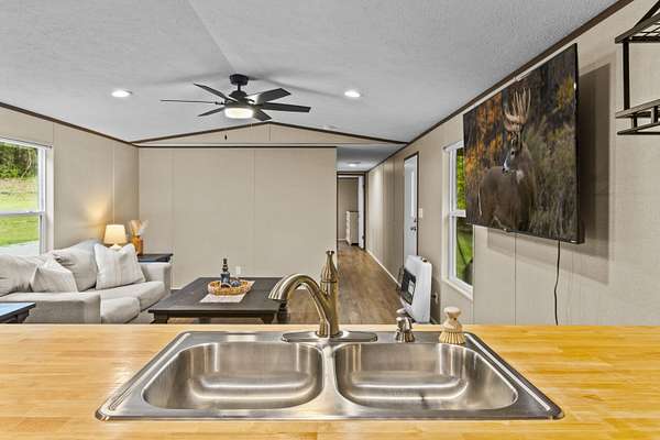This breathtaking 92.3 +/- acre turnkey property is a nature lover's dream, offering endless opportunities for recreation, relaxation, and country living at its finest. Enjoy gently rolling terrain with a perfect blend of pasture, woods, and scenic trails, along with approximately one mile of road and creek frontage in a peaceful, private setting. Roughly 25 acres of hay field provide excellent potential for farming or livestock. Explore miles of nature trails, ideal for horseback riding, hunting, or ATV adventures. The barn is equipped with separate water and electric meters and features six-strand high-tensile fencing, making it ready for your livestock. Seasonal creeks, streams, and a small pond offer year-round water sources for both wildlife and animals. At the heart of the property sits a 2024 Tru Home mobile home fully furnished and truly move-in ready. Interior features include LVP flooring throughout, solid oak kitchen cabinets with chopping block countertops, and a complete appliance package (stove, microwave, refrigerator, washer, and dryer). Bathrooms feature upgraded vanities and sinks, and the home is stylishly furnished with Ashley bedroom suites and living room furniture, including a love seat, end tables, coffee table, and three full bedroom sets. Conveniently located just 25 minutes to Winchester, 35 minutes to Lexington, and 45 minutes to Red River Gorge, this property offers the perfect balance of privacy and accessibility.