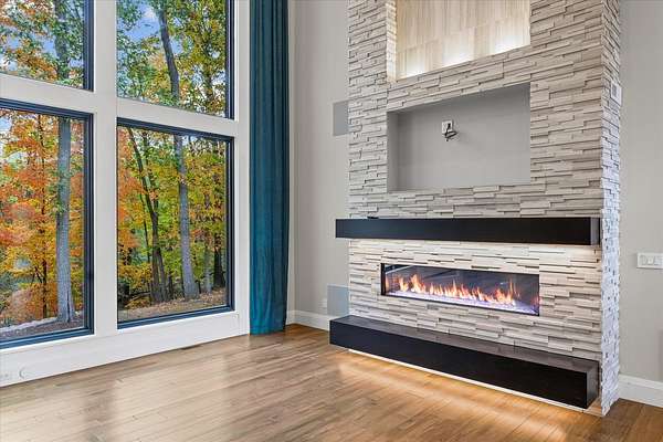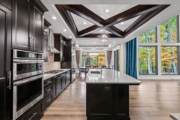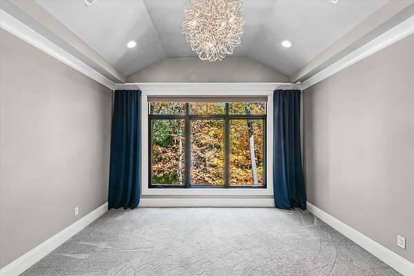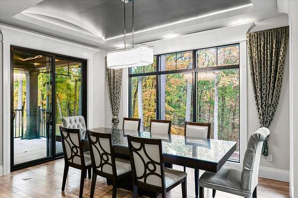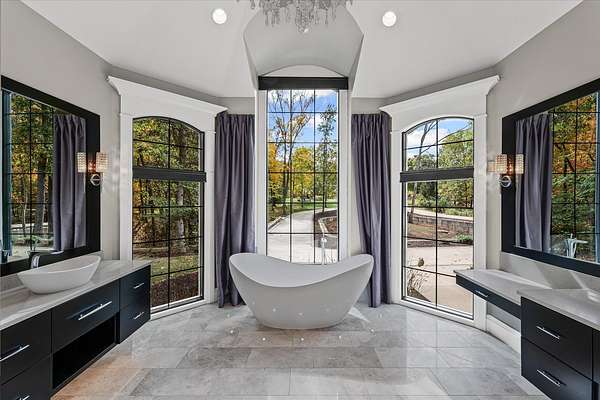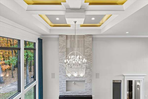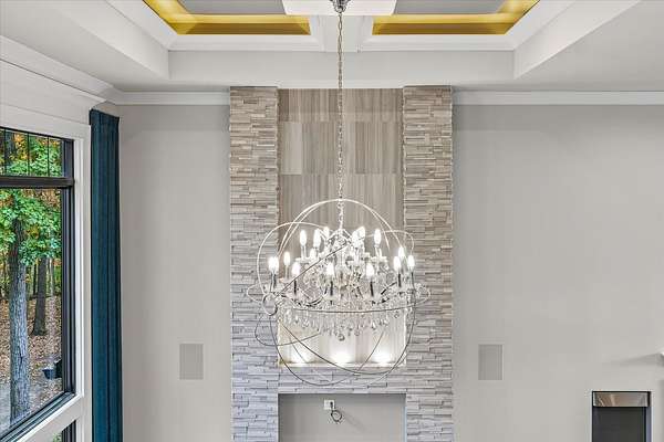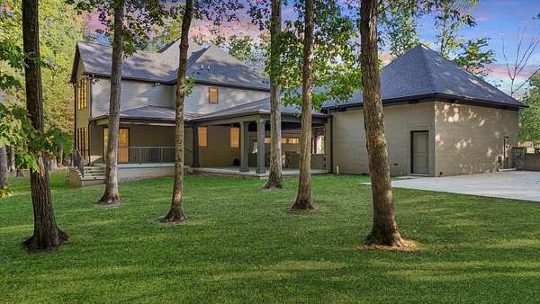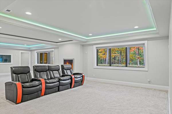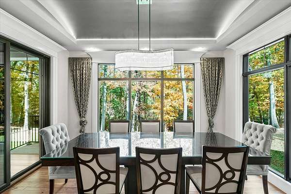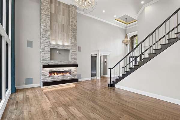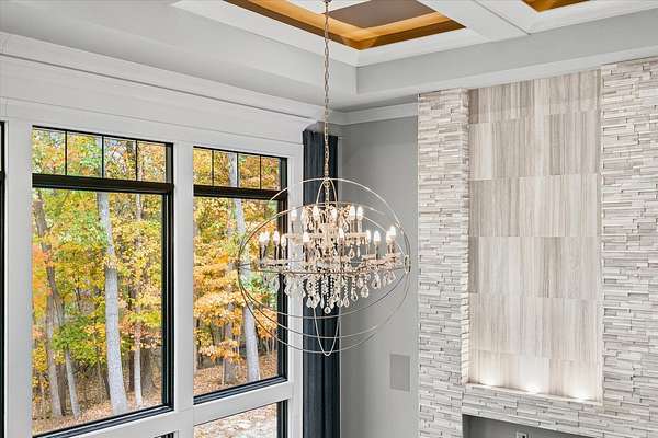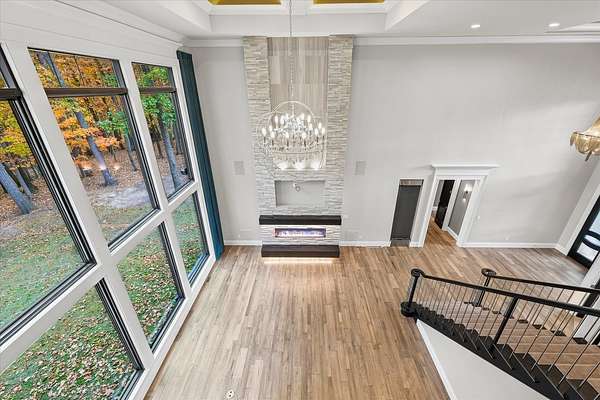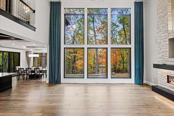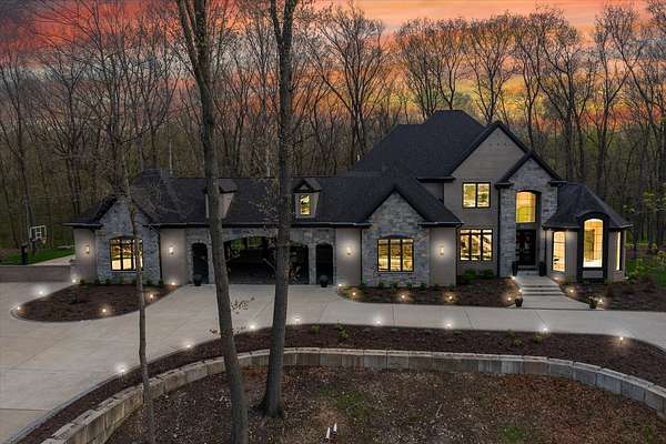 Located in the highly sought-after Thornewood Subdivision, one of Mahomet's most coveted communities, this stunning 2-acre estate sits quietly at the back cul-de-sac in The Reserve of Thornewood. Custom built by Premier Homes, the one-of-a-kind residence offers 6 bedrooms, 5.5 baths, and over 5,800 sq ft of luxurious living space. An additional 22 acres are available, providing exclusive Sangamon River access and interactive trails weaving throughout the woods for hiking, biking, and nature exploring. The impressive entry opens to a two-story great room with custom ceilings, a dramatic fireplace, and a wall of windows framing serene views of the wooded backyard. The gourmet kitchen is a showpiece with high-end stainless appliances, quartz countertops, a hidden butler's pantry, and a dining area wrapped in windows overlooking the infinity-edge backyard and forest preserve. The first-floor primary suite is a private retreat with a fireplace, arched ceiling, and three custom walk-in closets; the spa-inspired bath features marble floors, a soaking tub, dual vanities, and a walk-in shower with body jets. Upstairs, three spacious bedroom suites each include a private full bath and walk-in closet. The walkout lower level adds two bedrooms, a full bath, fireplace, built-in saltwater aquarium, gym, theater area, and open recreation space. Exterior highlights include two covered porches, a four-car garage, basketball half court, and circle drive, all set amid professional landscaping and mature trees for exceptional privacy. A rare opportunity to own a truly custom luxury home in an exceptional location-just minutes from schools, parks, and downtown Mahomet.