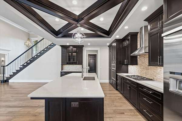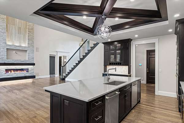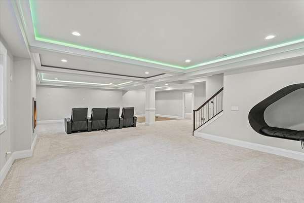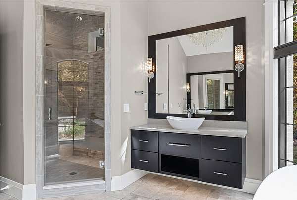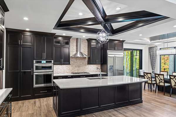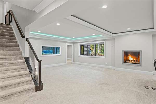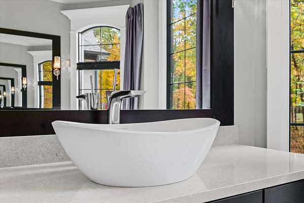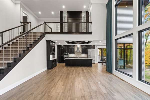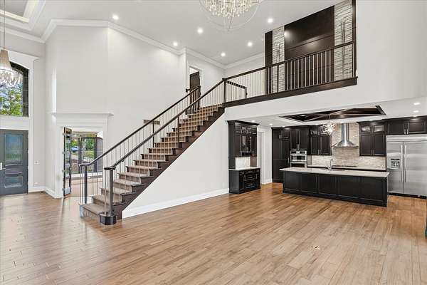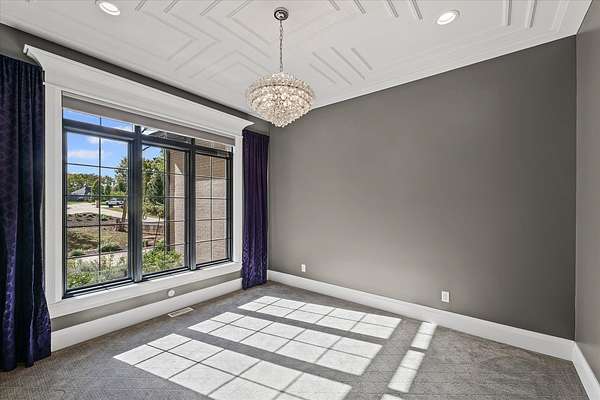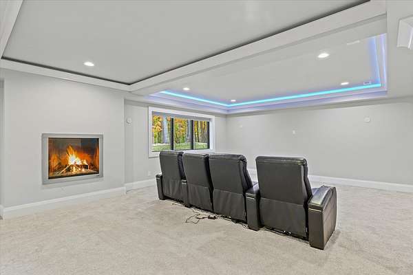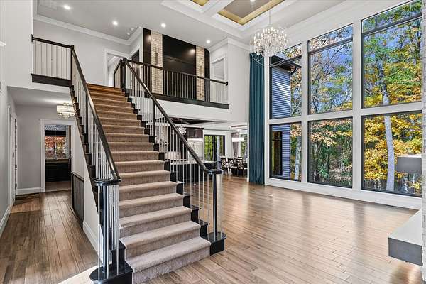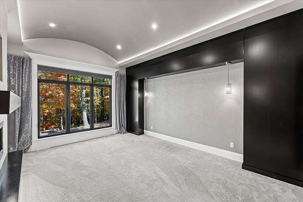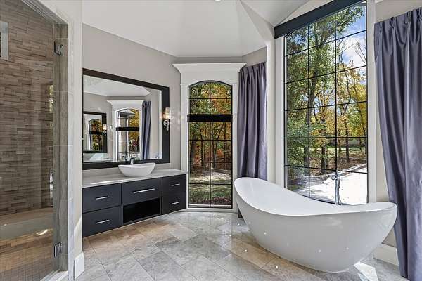 Located in the highly sought-after Thornewood Subdivision, one of Mahomet's most coveted communities, this stunning 2-acre estate sits quietly at the back cul-de-sac in The Reserve of Thornewood. Custom built by Premier Homes, the one-of-a-kind residence offers 6 bedrooms, 5.5 baths, and over 5,800 sq ft of luxurious living space. An additional 22 acres are available, providing exclusive Sangamon River access and interactive trails weaving throughout the woods for hiking, biking, and nature exploring. The impressive entry opens to a two-story great room with custom ceilings, a dramatic fireplace, and a wall of windows framing serene views of the wooded backyard. The gourmet kitchen is a showpiece with high-end stainless appliances, quartz countertops, a hidden butler's pantry, and a dining area wrapped in windows overlooking the infinity-edge backyard and forest preserve. The first-floor primary suite is a private retreat with a fireplace, arched ceiling, and three custom walk-in closets; the spa-inspired bath features marble floors, a soaking tub, dual vanities, and a walk-in shower with body jets. Upstairs, three spacious bedroom suites each include a private full bath and walk-in closet. The walkout lower level adds two bedrooms, a full bath, fireplace, built-in saltwater aquarium, gym, theater area, and open recreation space. Exterior highlights include two covered porches, a four-car garage, basketball half court, and circle drive, all set amid professional landscaping and mature trees for exceptional privacy. A rare opportunity to own a truly custom luxury home in an exceptional location-just minutes from schools, parks, and downtown Mahomet.