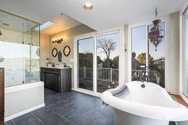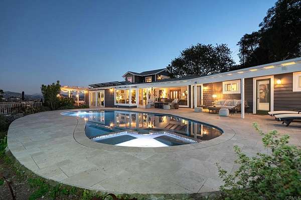 ABSOLUTELY STUNNING REMODELED 4 BEDROOM PLUS DETACHED EXTRA ROOM/POSSIBLE ADU, 3 BATH SINGLE STORY HOME WITH 2826 SQ FT ON 2 ACRES ON MT MERRITT WITH INCREDIBLE PANORAMIC VIEWS AND THIS ONE IS LOADED, INCLUDING PAID FOR SOLAR, NEWER ROOF, NEW GUTTERS, NEWER HVAC AND 3 MINI-SPLITS, FRESHLY PAINTED INSIDE AND OUT, SPACIOUS LIVING ROOM WITH FLOOR TO CEILING WINDOW TO REALLY TAKE IN THE VIEWS AND A FIREPLACE, VAULTED EXPOSED WOOD CEILINGS, LVP FLOORING, CUSTOM LIGHTING, NEWER WINDOWS AND SLIDERS, LARGE PRIMARY BEDROOM WITH DUAL CLOSETS AND ORGANIZERS, UDPATED PRIMARY BATH WITH CLAW TUB, DUAL VANITY AND A WALK-IN SHOWER, BEAUTIFUL KITCHEN WITH GRANITE COUNTERS AND STAINLESS APPLIANCES, SPACIOUS GUEST BEDROOMS, VIEWS FROM ALMOST EVERY ROOM, OVERSIZED FINISHED 2 CAR GARAGE WITH BUILT-IN STORAGE, PROFESSIONALLY LANDSCAPED YARD WITH LOTS OF FRUIT AND AVOCADO TREES, NEWLY RESURFACED POOL AND SPA, COVERED PATIO, TRAVERTINE DECKING, FULLY FENCED YARD, LARGE VIEW DECK WITH TILE FLOORING, ARTIFICIAL TURF, FOUNTAINS, LARGE MATURE TREES, INCREDIBLE PRIVACY, GATED ENTRY WITH LONG PRIVATE DRIVEWAY, RV PARKING, WORKSHOP AREA AND MUCH MORE.