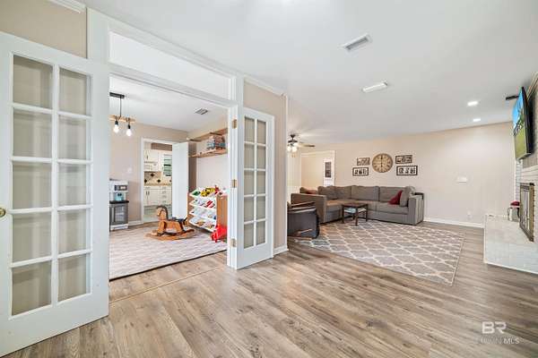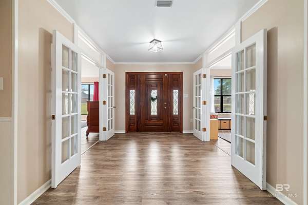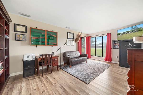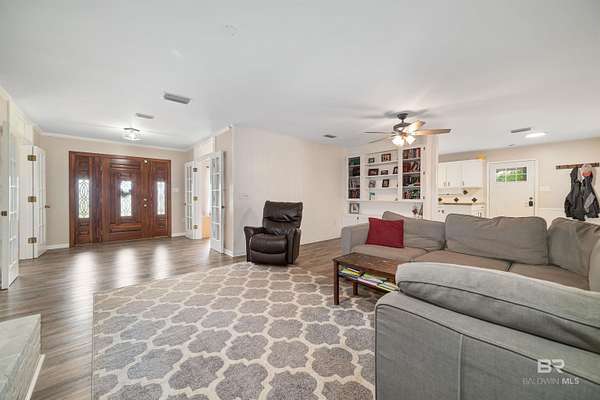 Incredibly RARE OPPORTUNITY to own apx 2 acres with a main house, guest house, & workshop. Located in the middle of everything that makes Foley convenient and just 1 minutes from OWA, shopping, over 25 dining options, Tanger Mall, the Bowling Ally and yet still only 20 minutes to the sandy white beaches of Gulf Shores & Orange Beach. The main home offers 4 bedrooms, 3 bathrooms featuring TWO primary suites both w/ en-suites & dual vanities PLUS an office, (or converted to a 5th bedroom) PLUS a flex space that can be used as a 2nd office, playroom etc, and there's more...a LARGE 300 sq. ft sunroom that gives you even more room to spread out and offers additional flexibility and functionality!! Use it as an enormous family room, kids room or add a pool and make it your new pool house!!! The detached guest house is yet another HUGE bonus with its own living area, kitchenette, bedroom, bathroom, & private patio overlooking a sprawling grassy area and beautiful mature trees—perfect for extended family, multi-generational living or additional income as a long term rental!No HOA means plenty of space for boats, RVs, vehicles, and toys.Major updates already done including roof in 2020, HVAC's (2014 and 2023), both electrical panels and all new breakers are new (Electrical ran w/ 240 amp breaker so a mini-split can be added to the guest house), all 3 water heaters have been replaced. New field lines for the septic & a new well for irrigation in 2020. And the final big selling point is … an assumable mortgage at 2.75%!! If you’ve been waiting for something with space, flexibility, and close proximity to everything that makes this area special —this is it. Buyer to verify all information during due diligence.