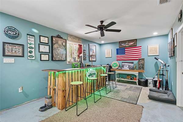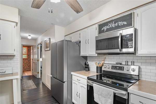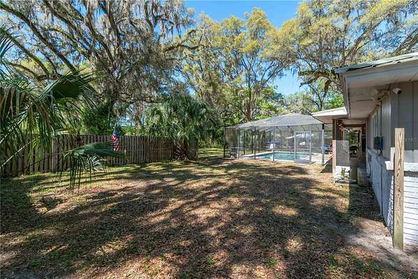Amongst stately granddaddy oaks in the Meadowbrook Ranches neighborhood, this charming 3-bedroom, 2.5-bath home on 4.44 acres offers the perfect blend of country living and modern convenience. A circular driveway welcomes you to the property, where a cozy front patio invites you to sit back and enjoy the peaceful surroundings. Inside, natural light fills the spacious 1,992 sq. ft. home, featuring a desirable split-bedroom layout and wood-burning fireplace in the living room. Stylish wood-look luxury vinyl flooring extends throughout most of the home, complemented by laminate in select areas. The well-appointed kitchen boasts stainless steel appliances and direct access to the dining area, which features a pass-through window to the living room for effortless entertaining. A versatile bonus room--currently used as a private bar area--offers endless possibilities, whether as an office, playroom, or additional gathering space. The inviting primary suite provides a relaxing space with multiple closets and a private en-suite bath. Step outside to the screen-enclosed back patio, where a sparkling in-ground pool and covered seating area with ceiling fans create the ultimate outdoor oasis. For those seeking space for hobbies, storage, or potential equestrian use, the property features a separate three-car garage/workshop with multiple bays, offering ample room for equipment or customization. While not currently set up for horses, the A1 zoning allows for easy conversion into a mini-farm if desired. Additional updates include a metal roof (2022), a new water heater (2022), and an HVAC system with a smart thermostat (2021). Whether you're looking for a private retreat or a place to create your dream homestead, this property delivers both comfort and potential--all just a short drive from both Ocala and Gainesville!