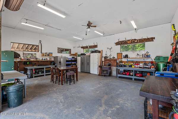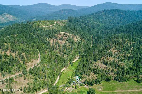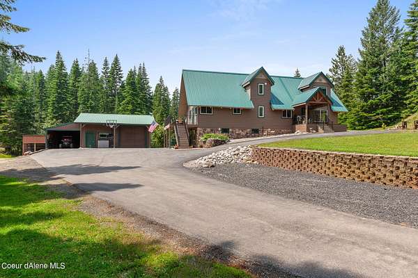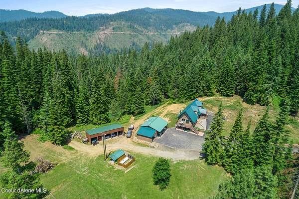 Peace and tranquility are a couple of words that best describe the privacy and seclusion this incredible 58+ acre property offers. Don't miss out on the opportunity to have your own mountain oasis next to thousands of acres of Forest Service/National Forest land which is close to town, but no neighbors in sight. Stand on the deck and watch several species of wildlife roam this property and spend time at the spring fed pond that sits below the home. This is a private mountain retreat with a large home, shop building, 5-bay machine shed or carport, beautiful views, open meadow, your own personal shooting area, and the freedom to live as you choose. If the power goes out, no need to worry. You have a 1,000-gallon propane tank which powers a whole house, automatic generator that operates the house, shop, and the well. The home is heated with a propane fueled radiant system, propane fireplace, and wood stove in the basement so you will be cozy in the colder months. The property is made up of 2 separate parcels so there is room to build another home on the acreage and you could potentially split it into more parcels if you wanted to turn this into a family compound. Hunt right out your front door, or drive less than 30 minutes to downtown Coeur d'Alene, shopping, restaurants, medical facilities, schools, and more.