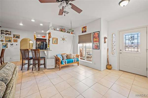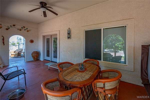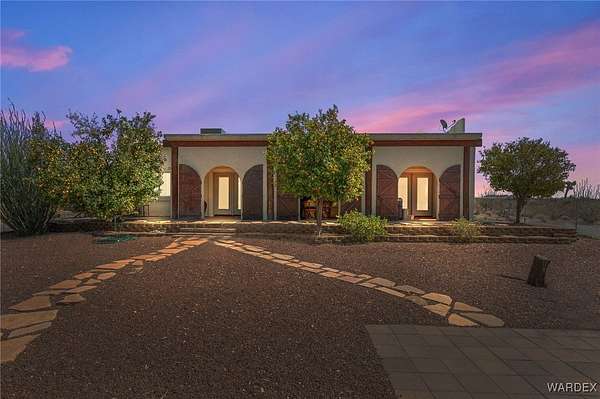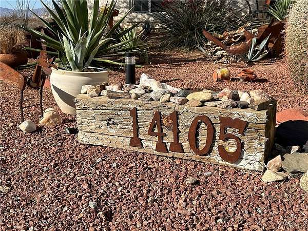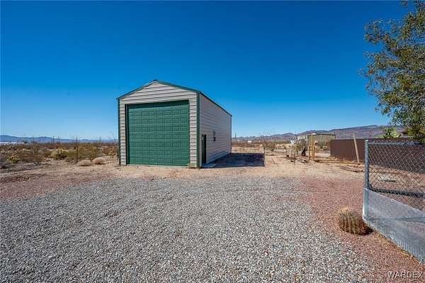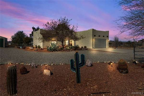 Nestled amidst the awe-inspiring landscapes of Yucca, AZ, this breathtaking Santa Fe-style home offers a rare blend of tranquility, natural beauty, and modern comfort. Set on 2.35 acres of pristine desert land, this home is less than 10 minutes from paved Alamo Rd, ensuring both convenience and seclusion. Surrounded by endless blue skies and a sea of towering Ocotillos bursting into vibrant bloom, this property is a desert sanctuary like no other. Step into 1,413 sq. ft. of inviting Southwest charm, where an open-concept layout welcomes you home. The spacious kitchen, featuring stainless steel appliances, a large pantry, and stunning Talavera tile behind the stove, seamlessly flows into the airy living area creating a perfect space for entertaining or quiet relaxation. Enjoy peace of mind with a recently updated HVAC system, only 1 year old, ensuring year-round comfort. The primary suite is a private oasis, with two oversized walk-in closets, a spa-like en-suite bathroom with a soaking tub, walk-in shower, a dual sink vanity, and expansive windows that bathe the room in natural light. Step outside onto the stunning covered patio, where elegant arched entryways frame breathtaking desert sunsets. Unwind in the hot tub as you take in the serene surroundings, where the only sounds are the whispers of the desert breeze. The fenced backyard is a lush paradise, featuring two generously producing orange trees, a lemon tree, seven palm trees, and two pistachio trees. Beyond the fence, there s ample space for your horses, complete with two shaded mare motels and non-climb horse wire fencing. For those who need space for vehicles or hobbies, this home delivers: in addition to a two-car attached garage, a massive 20x40 detached garage provides room for up to four more vehicles, a workshop, or storage for all your desert adventure gear. Surrounded by unparalleled natural beauty and offering the perfect blend of modern comfort and rustic charm, this Yucca gem is more than a home it s a desert retreat where every sunrise and sunset is a masterpiece. Don't miss this opportunity to own a slice of the Southwest's most breathtaking landscapes!
