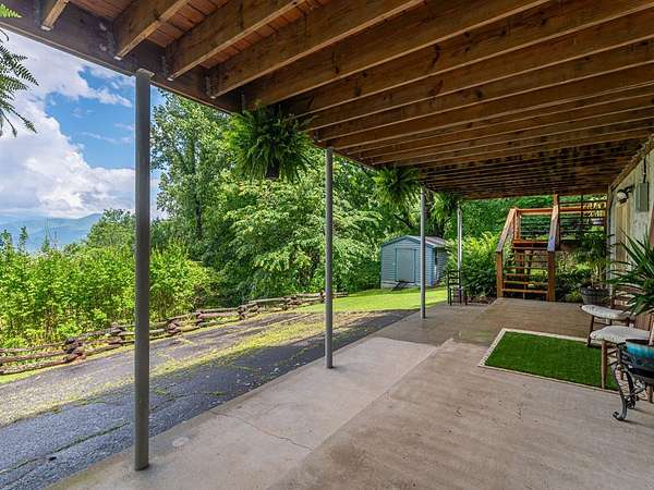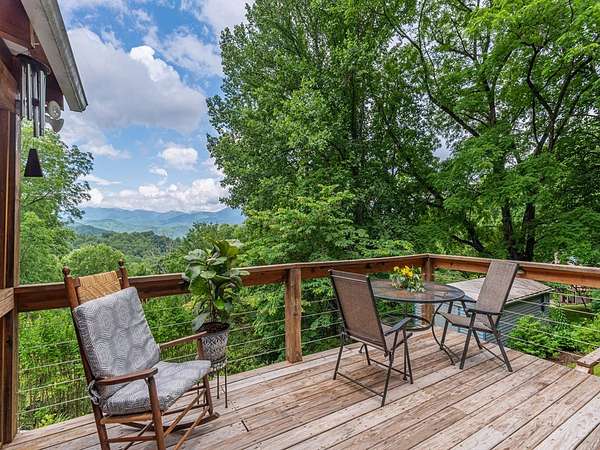 Nestled at 3,000-FT elevation, this mountain home offers stunning sunrises and Blue Ridge Parkway views and a treehouse feel that'll leave you breathless. With 1.97 acres at the end of a private road, enjoy a perfect retreat inspired by the outdoors and year-round living. The open deck and covered/screened porch are surrounded by vibrant foliage, presenting a kaleidoscope of colors. Inside, the spacious kitchen boasts custom cabinetry, granite countertops, a breakfast bar & tile floors. The main level features open living with engineered wood floors, a cozy bedroom and hall bath. Upstairs offers a large bedroom with a vanity inside, and an adjoining bath including a walk-in shower and toilet. The lower level includes a den/rec room, third bedroom with walk-in closet, hall bath & a mud/laundry room. Additional features include a carport and outbuilding. Just minutes to Harris Regional Hospital, Downtown Sylva & WCU, this property blends mountain seclusion with convenient access to town!