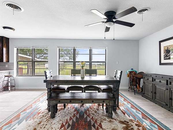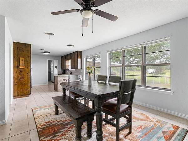 Hardwood floors, granite countertops and tons of natural lighting open up this home to flowing comfortable spaces. The remodeled kitchen has new stainless appliances, and is open to the incredibly roomy dining area with its wall of windows. Just off the kitchen is the washer, dryer, half bath and back door. A great layout for the outdoors people who are just coming inside. The master bedroom has an ensuite bath and a roomy walk-in closet. The living room, is open to the front of the property with another wall of windows. Gigantic trees throughout the property offer shade and relaxation. Behind the large yard, are most of the three acres, fenced and cross fenced with pipe fencing and wire fencing. Awesome place for a roping arena or pens, and pasture. With just a short walk, are the LBJ National Grasslands, providing 20,000 acres of pastures, woods and trails to camp, walk or ride horses in. This is such a great piece of heaven for any family or individual wanting beauty and space for all sorts of agricultural activities or a quiet home away from the city!!