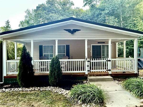 Welcome to this charming 2-bedroom, 2-bath home nestled on over 8 acres in a pleasant and quiet location with a small stream running along the rear of the property. Built in 2006, this well-maintained home features a metal roof for long-lasting durability and peace of mind. Inside, you'll find a bright and comfortable layout. Large windows fill the open living spaces with natural light, enhancing the home's warm and welcoming feel. The owner's suite offers a walk-in closet and a private bath with both a soaking tub and separate shower, creating the perfect space to relax and unwind. Outside, enjoy your mornings or evenings on the welcoming front porch or covered side porch while taking in the peaceful surroundings. A 2-car detached garage offers ample parking and storage space. With 1,352 square feet of living space and 8.52 acres of land, this property provides the best of both worlds-cozy living with room to roam. Whether you're looking for a homestead, a private retreat, or a place to spread out and enjoy nature, this home is a must-see! Call today to schedule a private showing! Agent is related to the seller.