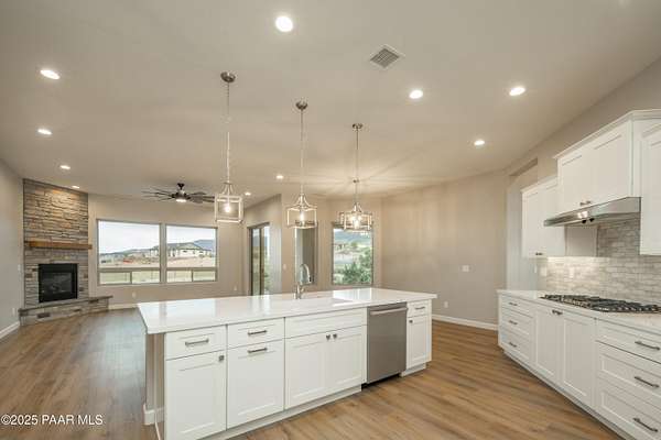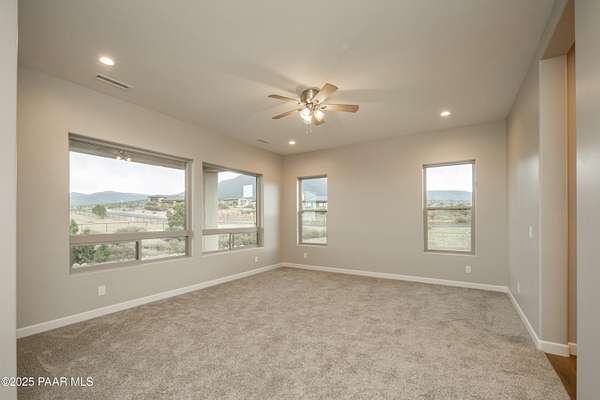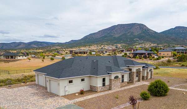 Newly installed wrought iron fence in backyard!! This beautifully designed home sits on a spacious 2.35 acre lot and offers ample space for horses or the addition of an RV garage. Low maintenance and amenities like tankless hot water heater with recirc, Quartz countertops, luxury vinyl flooring, stainless steel Bosch appliances. Stunning views of Mingus Mountain. The home boasts high-quality construction, including fully sheared 2x6 exterior walls with R-21 sprayed cellulose for maximum energy efficiency. Seamless connectivity with structured wiring and wiring for satellite. Large back patio for entertaining. Landscaped. 40 gpm well production!!