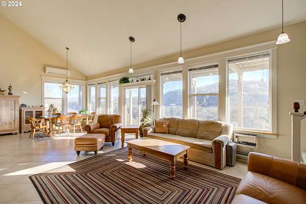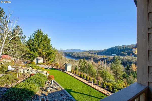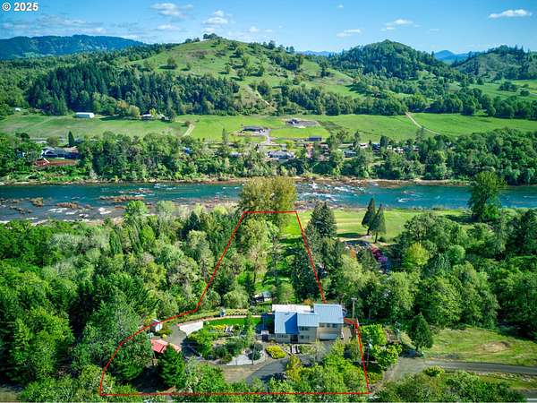 Discover your dream riverside retreat at 14115 North Bank Rd, Roseburg, OR! This custom-built 1994 home offers 3 bedrooms, 2 baths all within a spacious 1970 sqft. Nestled on 2.51 acres, with 1.5 acres that is flat with river access, enjoy stunning views of the North Umpqua River from your open floor plan with high vaulted ceilings and abundant windows. The metal roof and 2-car garage with a 50amp plug add practicality, while ample parking accommodates your boat or RV. Multiple outbuildings provide storage or workshop space, and outdoor seating areas invite relaxation and views of the river below. Entertain guests with an artificial grass area perfect for corn hole and bocce ball. Plus, a separate guest quarter with a 1-bedroom, 1-bath manufactured home offers privacy and convenience. This property is a perfect blend of tranquility and adventure. Don't miss out on this unique opportunity!