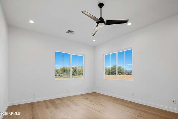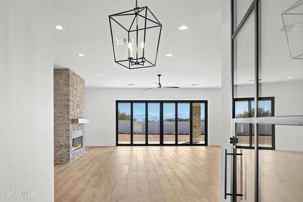 COME SEE THIS JUST COMPLETED & Move in Ready stunning 3,411 sqft custom home! Nestled within the prestigious Granite Mountain Ranch Scottsdale's only gated equestrian community. This 5-bedroom, 3-bathroom residence sits on an expansive 2.85-acre lot, offering exceptional privacy, serenity, and breathtaking mountain views. Step inside to soaring 10' flat ceilings, rich engineered hardwood flooring, and a seamless blend of modern elegance and timeless design. The gourmet kitchen features upgraded appliances, custom cabinetry, and an open layout perfect for entertaining. The spacious great room showcases a dramatic stone fireplace, creating a warm and inviting focal point. The spa-inspired primary suite offers a luxurious retreat with a beautifully designed bathroom and walk-in closet. Outside, the property includes a 20' x 50' RV garage, a fully fenced backyard, and plenty of room to enjoy the surrounding desert landscape. Residents of Granite Mountain Ranch enjoy exclusive access to community riding arenas, round pens, wash stalls, and miles of scenic riding trails, making this an ideal property for equestrian enthusiasts. Now completed and available to tour -- updated professional photos reflect the finished home.