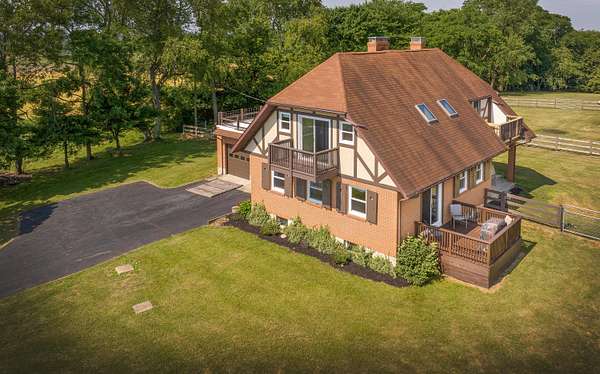 Stunning German-Style Chalet with Geo-Thermal Efficiency right outside Apple Valley, OH. Welcome to a rare blend of architectural charm, luxury and cutting-edge sustainable comfort just outside of Apple Valley in beautiful Howard (Knox County), Ohio. This exceptional 4 Bedroom, 3 Bath German-style chalet offers an unmatched lifestyle for buyers seeking to start their homestead or simply enjoy the peace of country living. Two of the spacious bedrooms offer en suite bathrooms as well as private balconies that provide incredible views of the surrounding countryside. The bright, sunlit kitchen boasts Butcher Block countertops and is big enough for the whole family to gather comfortably. The kitchen flows into the dining area and adjoining deck, perfect for enjoying morning coffee or stargazing after dinner. Full, dry, walk-out basement has plenty of room for storage and space leftover for a home gym. The home features a traditional German ceramic masonry stove, as well as a wood burning fireplace, providing both warmth and character. All new stainless appliances installed September 2023, new Bradford White water heater September 2025, new Viqua UV Water Treatment System and Always-Fresh High-Flow Drinking Water System installed April 2025 by Waterbird Home Solutions. New Natural Gas line ran to the house. Nestled on 2-acres with 3 fully fenced-in pastures and a two-stall barn with water and electric. The possibilities are endless!