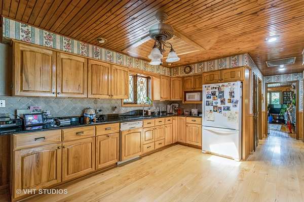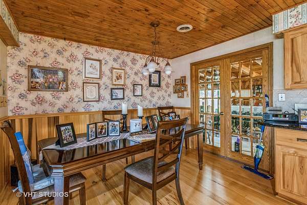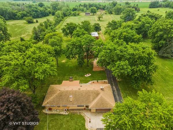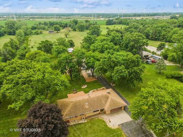Unbelievable opportunity!!! Country living. 8 level ACRES of property with a solid brick ranch home with a 2 car attached garage. There is a 5+ car detached garage, an additional outbuilding plus an older barn near the back of the property. Beautiful mature tree scattered on the property gives shade relief in the summers. The home was built in 1968 by the owner. He owned a brick company and this home is very solidly built - along with the 5+ car garage. Being sold "as is", although no major concerns expected. The home has an open concept living, kitchen, dining area. The kitchen has very nice updated and maintained cabinets with beautiful black granite countertops, an electric double oven with an electric cooktop stove and the dishwasher were all done approx. 15 years ago. The refrigerator is 8 years old. The wood ceilings throughout the living areas of the house are gorgeous. The 3 great sized bedrooms have plaster ceilings. The main hall bath has been updated with vanity, countertop and a tiled walk in shower and floor. There is a half bath off the back door hallway near the amazing family room, garage entrance door and the basement stairs. There are 2 wood burning fireplaces (living room and family room) - and 1 gas fireplace in the sunroom just out the beautiful beveled glass french doors in the dining room. The sunroom was used as a salon, so water supply is already there if a wet bar was wanted in that room. A separate door entrance goes to the back deck and brick patio area. All windows were replace about 25 years ago, so they are not the original ones. The well and septic systems are routinely maintained with no concerns. The shingle roofing was replace 12 years ago. The boiler for the hot water heating is only 5 years old. The mostly finished basement had US water proofing done years ago, although the basement has never had water in it. There is a large walk in shower in the basement also. A nice big office area with fantastic custom brick walls, a great living area, a wall of closets for holiday decorations or whatever you want storage in the laundry room. An additional storage room is large for larger storage items and the boiler area is also large. The walkout stairway to the backyard makes for great access in & out of the basement. The property is level with tons of parking. The pasture space in the back of the property would be great for horses and/or farm animals. The barn at the back of the property is old and needing repair but could be good for storage or animals. The property backs up to a large open field.This wonderful home and property is true country living, yet nicely located near the expressways, Silver Cross Hospital and the new Sports facilities. A fantastic opportunity for anyone wanting the best of everything. NOTE: The vacant 2.66 acre lot to the west of this property listing is also listed separate MLS #12146896 - price $219,900. It can be sold independent from this (8 acre) listing, but the property with the house and buildings on 5.32 acres is NOT independently for sale from the vacant 2.66 acre lot unless vacant lot sells.