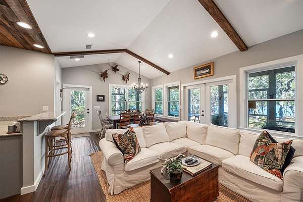 This lakefront retreat on Mason Lake offers the perfect balance of natural beauty, tranquility, and modern comfort. Situated on a gorgeous wooded lot surrounded by majestic oaks and longleaf pines, the 2014-built home feels like a private escape while delivering the conveniences of contemporary living.