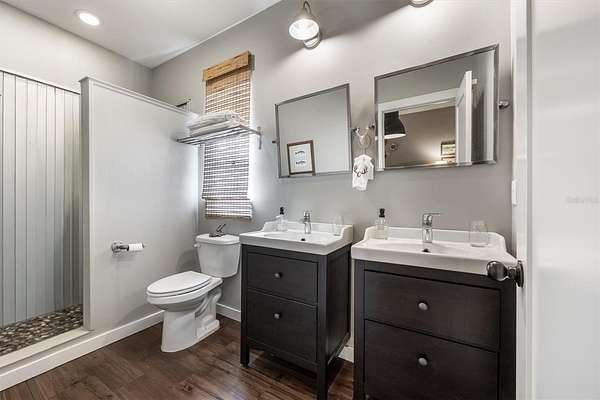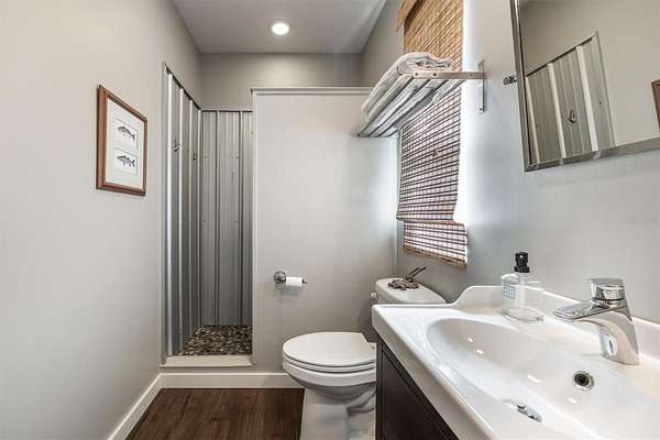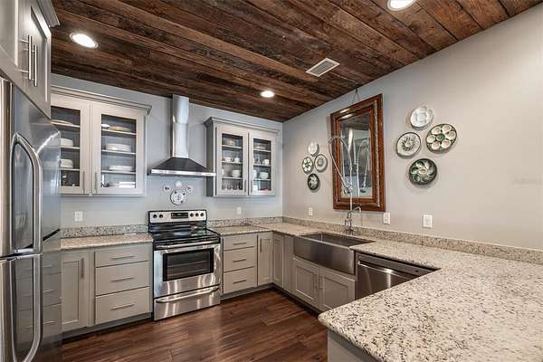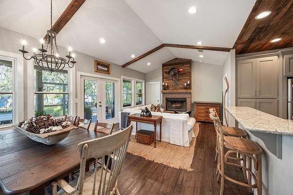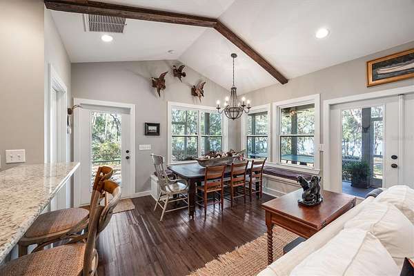 The thoughtfully designed layout centers around a custom kitchen that anchors the open living and dining spaces, ideal for both everyday living and entertaining! A cozy wood-burning fireplace creates a welcoming gathering spot, while three spacious bedrooms--each with its own private ensuite bath--offer exceptional comfort, privacy, and flexibility for family and guests. Step outside to the screened lanai, generous enough to host a crowd yet perfectly suited for intimate evenings. With panoramic lake views and seamless indoor-outdoor flow, this inviting space can be enjoyed year-round! Outdoor living continues with a charming brick fire pit for evening gatherings, complemented by a lakeshore covered deck that provides shaded seating and direct access to the water. An oversized outdoor shower offers a refreshing rinse after long days on the lake. Mason Lake is ideal for water sports, including boating, kayaking, paddle boarding, tubing, and swimming in its clear, refreshing waters. Located just 30 minutes from Gainesville, this Lake property offers easy access to shopping, dining, and the University of Florida--while remaining far enough away to preserve true lakeside peace! Beautifully maintained and thoughtfully designed, this modern lakefront retreat combines comfort, privacy, and recreation. This is a rare opportunity--schedule your private tour today.