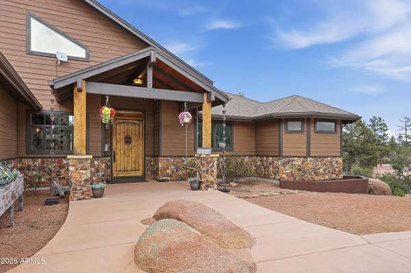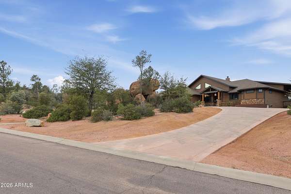 Custom-built home on over two acres in Payson's highly regarded Forest Edge community, set at the foothills of the Granite Dells with views of both the Mogollon Rim and surrounding mountain ranges. This single-level residence offers a split floor plan with 4 bedrooms and 2 bathrooms, designed for comfort, privacy, and easy living. Hardwood floors run throughout the main living areas, while large windows bring in natural light and showcase the peaceful, wooded setting. The oversized 3-car garage provides ample space for vehicles and storage, complemented by a loop driveway with extra parking and plenty of room for RVs, trailers, and recreational toys. Outdoor living is a highlight on the featured massive redwood deck that's ideal for entertaining, relaxing, or enjoying the quiet Rim Country evenings. A walk-out unfinished basement offers exceptional potential for future expansion, a workshop, or additional storage. Enjoy the perfect balance of convenience and seclusioneasy access to town while still far enough out for true privacy and quiet living. With a low $50/year HOA and a non-gated setting, Forest Edge is known for its space, flexibility, and natural beauty. A rare opportunity to own acreage, views, and freedom in one of Payson's most sought-after communities.