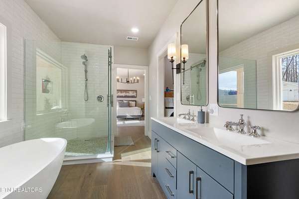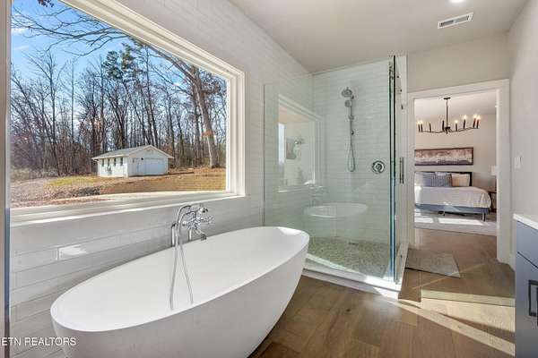 Prepare to be amazed by this fully reimagined contemporary-farmhouse 5300+ sq ft masterpiece on 7+ private acres just 11 minutes from Downtown Knoxville and minutes from UT Campus, Maryville, and the McGhee Tyson Airport (TYS). Formerly a mid-century modern home, this property has undergone a complete, top-to-bottom renovation with new roof, siding, windows, driveway, HVAC units, and luxury finishes throughout. Inside, the open floor plan offers panoramic mountain and property views from every room. The main level features wide-plank hardwood floors, custom interior lighting, two gas fireplaces, and a stunning chef's kitchen with marble countertops, porcelain farm sink, custom cabinetry with built-in lighting, Viking appliances, pot filler, garbage disposal, and a separate walk-in pantry. The main-level primary suite showcases breathtaking views, a spacious custom closet with laundry, and a spa-inspired bath with a custom tub and walk-in shower. Guest bedrooms each include private en-suite baths. A showpiece motion-activated, lighted staircase leads to the finished daylight basement, complete with stained and sealed concrete floors, built-in speakers, custom cabinetry, full bar/kitchen with KitchenAid appliances, granite counters, additional guest bedroom and bath, plus a dedicated weight room with equipment included. Enjoy indoor-outdoor living through the impressive $10,000 bi-fold terrace doors opening to the expansive back deck-complete with a porch bed and sweeping mountain views. Foam insulation in the main house enhances energy efficiency and reduces HVAC costs. Car enthusiasts and hobbyists will love the separate 4-8 car, 1,380 sq ft insulated garage/shop with epoxy floors and equipped with electric car charger, HVAC control, and drive-through doors, plus an additional storage shed. Newly poured driveway provides access to both the front and back of the property. Exterior upgrades include front gas lanterns, Ring motion flood lights, and scenic acreage zoned Agricultural for low taxes. A rare blend of luxury, privacy, acreage, and unbeatable convenience-this one is truly special.