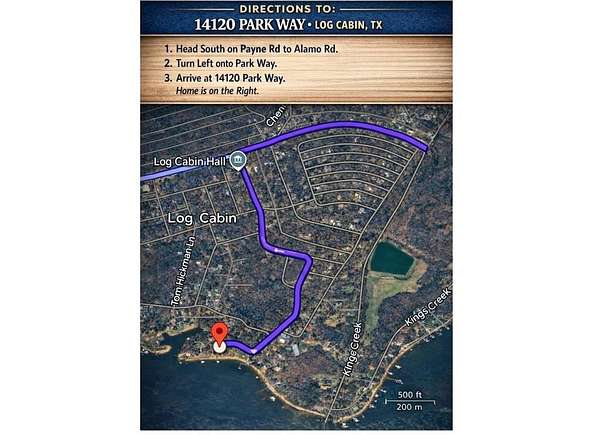 From FM3054, Turn left onto Alamo Rd, then Turn right onto Park Way, pass security gate, first house on the right.