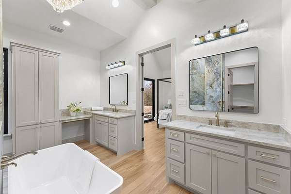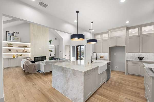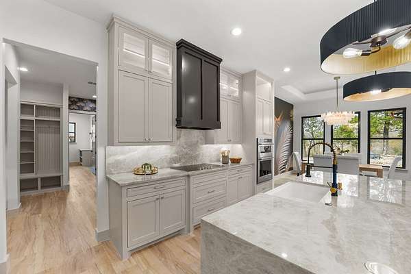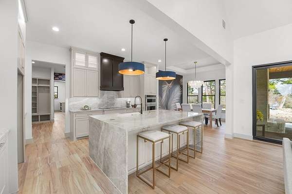 Best access: From Payne Rd. to Alamo Rd. right on Park Way ** Extraordinary luxury lakefront retreat on Cedar Creek Lake, tucked away on a private, gated peninsula with only a handful of homes--where privacy, craftsmanship, and water access meet. Set on 1.7 acres with 300+ ft of lake frontage, offering room for an ADU or shop, 360 lake views (including deep-water views across the street), and direct access to a protected, multi-creek-fed cove that typically stays wet during low season--providing quiet water away from heavy boat traffic. A golf cart path leads directly from the home to the boathouse. Designed for refined living and entertaining, this home offers 4-5 bedrooms, 3.5 baths, and approx. 3,500 sq ft. Four bedrooms are on the main level, including the primary suite, while the upper level provides a 5th bedroom or flexible game-media space. Interiors showcase elevated finishes including imported Taj Mahal Quartzite countertops, handmade inset Shaker cabinetry, and a custom imported wallpaper mural. Architectural highlights include 17-ft ceilings, vaulted spaces, 8-ft five-panel doors, Lifeproof luxury vinyl flooring, porcelain tile baths, and curated fixtures. The kitchen features a separate prep kitchen-pantry, while an independent wet bar with wine chiller enhances entertaining. The primary suite offers a spa-inspired bath with dual vanities, soaking tub, crystal chandelier, expansive walk-in closet, and sliding exterior door. Outdoor living includes a large covered patio with wood-burning fireplace, copper rain gutters, lake-fed irrigation, and a private boathouse. While lake levels fluctuate, this cove typically allows year-round boat access. Nearby amenities include fishing pier, picnic areas, playground, swimming access, and boat ramp. Short-term rentals allowed--where luxury meets seclusion.