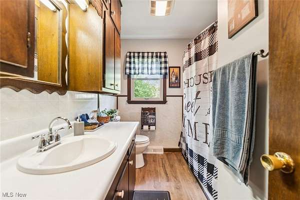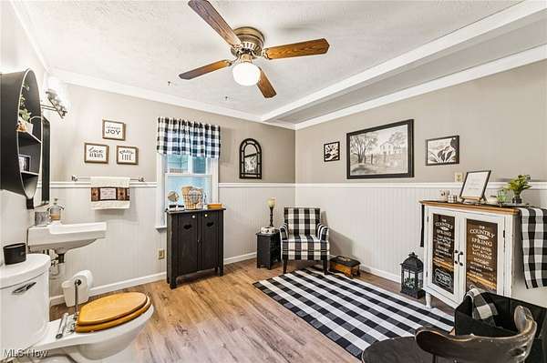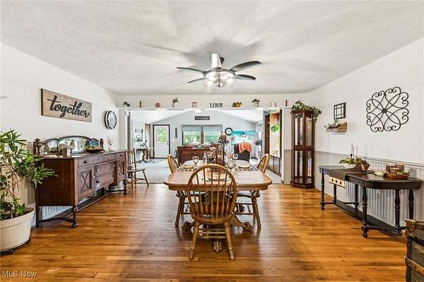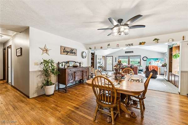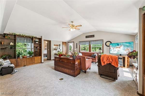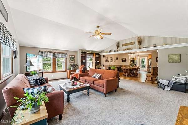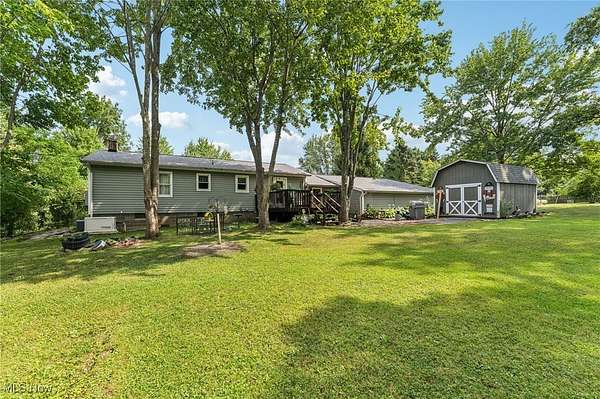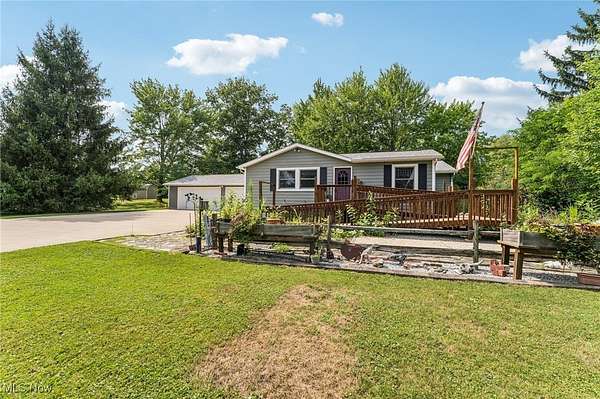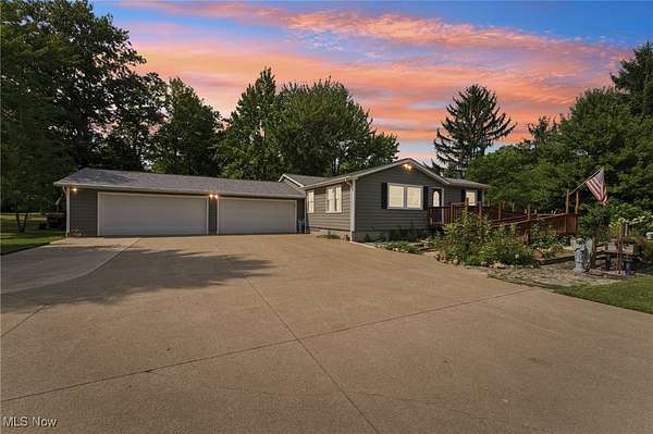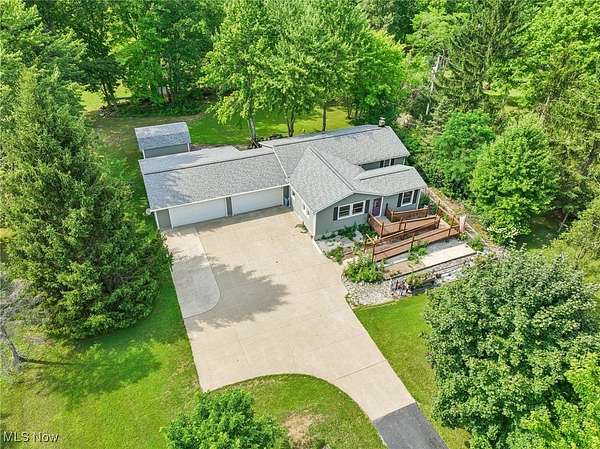 Welcome to this charming 3-bedroom Ranch home in Chardon, OH, nestled on over 2.5 acres of peaceful, scenic land! The long driveway sets the home far back from the road, offering plenty of privacy and tranquility. As you approach the front door, a welcoming ramp invites you to imagine a beautiful garden haven - picture strolling through a lush garden maze right at your entryway. Prefer a more direct entrance? The ramp can easily be removed to suit your needs. Step inside to find a spacious living room with vaulted ceilings that flows seamlessly into the generous dining area - an ideal setup for hosting family gatherings and festive dinner parties. The kitchen sits conveniently at the back of the home, perfectly positioned so you can cook and socialize without missing a moment. To the right of the dining room, a hallway leads to two comfortably sized bedrooms, a full bathroom, and a convenient half bath with a vanity area. Just off the living room, you'll find the final bedroom - perfect for a home office, guest room, or cozy retreat. Downstairs, the expansive basement offers endless possibilities - from storage and workshops to future finished living space. The attached 4-car garage provides ample room for vehicles, tools, and hobbies, with an additional workroom at the rear for your projects. Outside, unwind on the back deck with your favorite drink and a good book while enjoying the serene surroundings. With the home ideally situated in the center of the lot, you'll love the generous front and backyard space for gardening, play, or simply soaking in the outdoors. Don't miss your chance to explore all the potential this beautiful property has to offer - schedule your showing today and envision your future here!