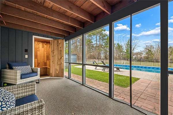 At its heart stands an inviting, winsome Frank Lloyd Wright-inspired home, featuring a high-end open kitchen with professional-grade appliances, a walk-in pantry, abundant living space throughout, and a luxurious primary suite. Not to mention a large and heated inground pool, custom cedar sauna, and a sport court perfect for basketball or pickleball! This property has endless entertainment spaces inside and out!