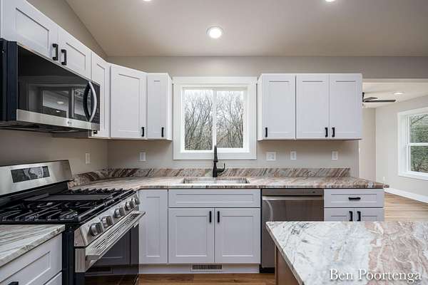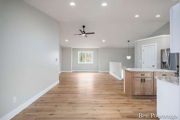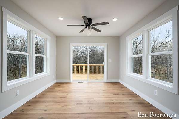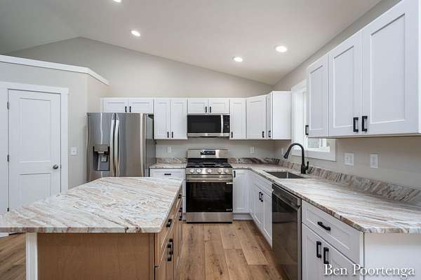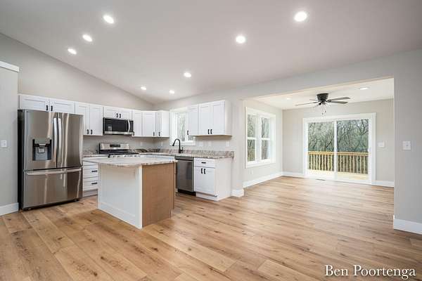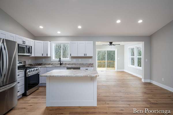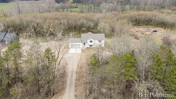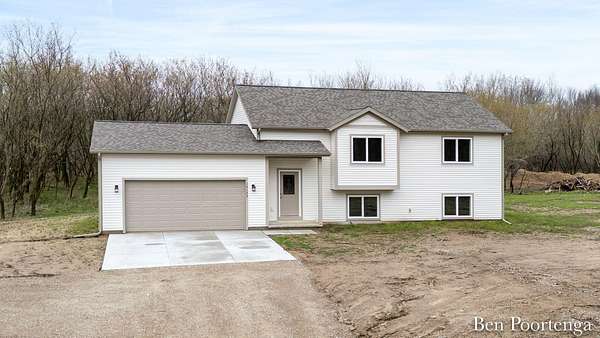 NEW CONSTRUCTION! Enjoy craftsmanship and finishes in this 4 bed/2 bath home not offered with other homes at this price point. Sitting on over 2.5 acres, you'll enjoy the peace and quiet of country living just minutes from downtown Greenville and a short drive to Rockford and Grand Rapids. The view from your back deck is mature trees and wildlife. Inside you're greeted with warm tones from the LVP flooring and stair treads that complement the leathered granite counters and custom kitchen island. Soft-close cabinets, undermount sink, stainless appliances, and large pantry complete the kitchen. Dining area and bonus 4-season room encourage you to entertain, and a large living area provides ample space. 2 bedrooms with ceiling fans and a full bath round out the main level. Downstairs you'll find 2 more bedrooms, a second full bath, laundry, bonus room and large living room that walks out to the backyard. A large 2-stall attached garage keeps you out of the cold. Don't miss this one!