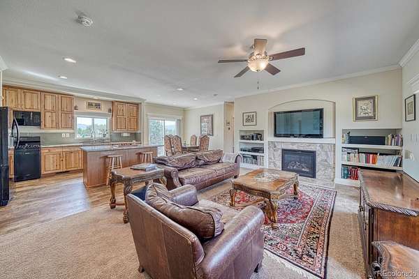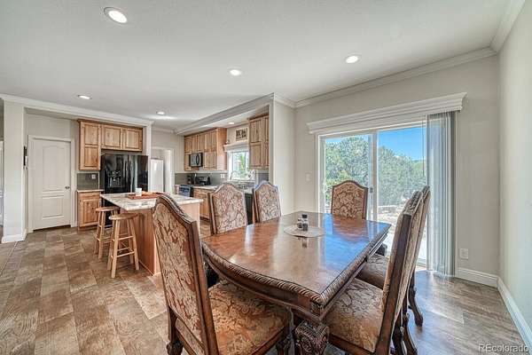 Inside, the home features a warm and welcoming living room with a cozy fireplace, a dedicated dining area, and a sunny eat-in kitchen with a walk-in pantry for excellent storage. Large windows bring in natural light and capture remarkable mountain views from nearly every angle. The spacious primary suite includes a walk-in closet and a luxurious full bath with a soaking tub positioned to take in the peaceful landscape. Two additional bedrooms also include walk-in closets, offering flexibility for a variety of needs.