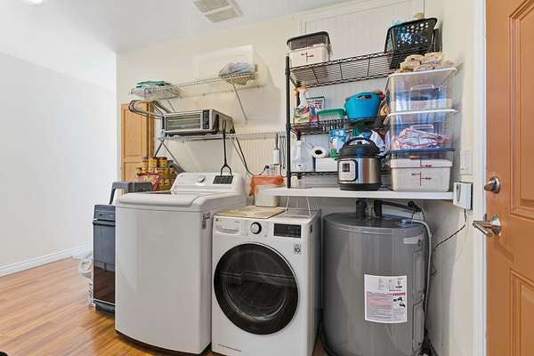 - Dishwasher, Dryer, Free-Standing Range, Hard Surface Counters, Refrigerator, Washer