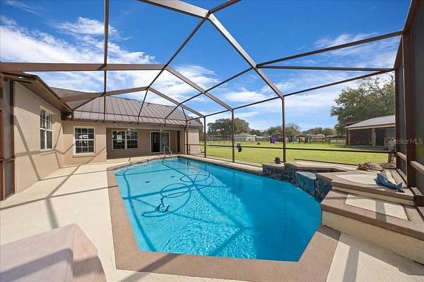 Bring your Horses! Just minutes from the Florida Horse Park and a short drive to the World Equestrian Center and HITS, this 4-bedroom, 2.5-bath pool home offers the perfect blend of comfort, functionality and equestrian lifestyle. Situated on 2.57 acres this property is thoughtfully designed for both you and your animals. Inside the home features 2,635 square feet of living space with tile flooring throughout for added durability. The kitchen provides generous cabinet and counter space, ideal for cooking and entertaining. Spacious primary suite boasts a en-suite bathroom with double vanities and a beautifully tiled walk-in shower. Two additional guest bedrooms are conveniently located on the opposite side of the home near a guest bathroom, offering privacy for family or visitors. As a added bonus the fourth bedroom offers versatility as a potential mother-in-law suite, complete with its own private exterior entrance for added convenience. Step outside to a screened-in pool with a waterfall feature, offering a peaceful retreat with views of your property. The fully fenced acreage includes double-boarded fencing in the front and single-boarded fencing in the back, all with double mesh for added security. Equestrian amenities include 4 paddocks, a round pen that can easily convert into an additional paddock and a well-appointed 4-stall barn with space for a 5th stall & an attached tack/ feed room. Additional features include a 20x25 detached two-car garage, a separate shed for equipment and even a concrete bunker. Many recent updates include a New HVAC in 2025 with 10-year transferable warranty, New roof in 2019, Pool resurfaced in 2021, New Interior and exterior paint in 2025/2026 ( shown in front exterior photos), Septic pumped out & inspected in 2026 and horse barn built in 2018, plus a 1 year home warranty at closing ensure this property is move in ready. Whether you're looking for a private retreat or a turnkey mini farm, this property has it all. The seller welcomes drive-bys and is happy to give a tour if they're home when you stop by!