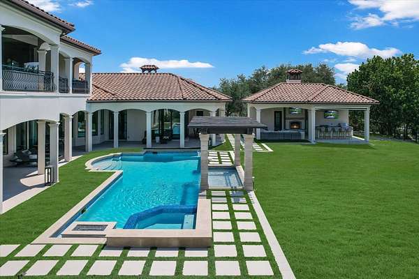 Nestled in the prestigious gated community of Bellagio Estates inside Steiner Ranch, this residence offers unparalleled lakefront living w/200+/- feet of Lake Austin shoreline and resort-style amenities on an expansive corner lot. The main house is 10,000 +- sqft with 3,000+- sqft basketball gym, golf simulator, wellness area and guest quarters.