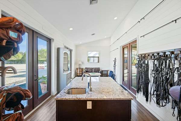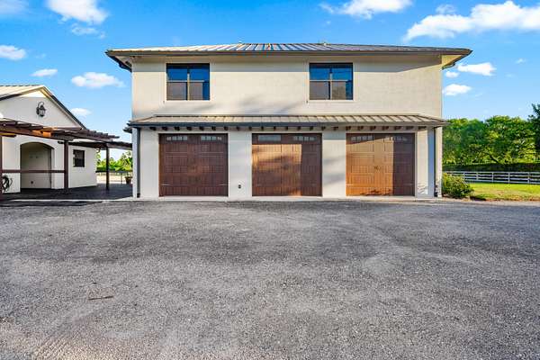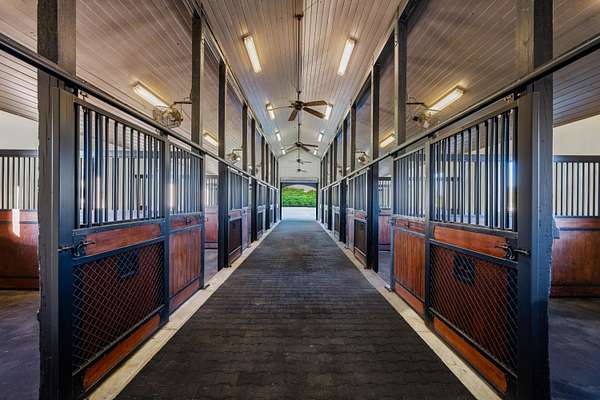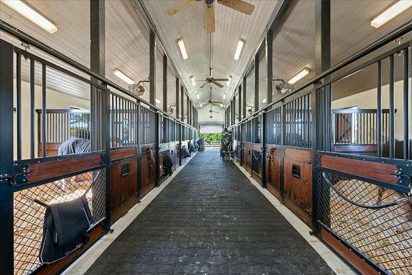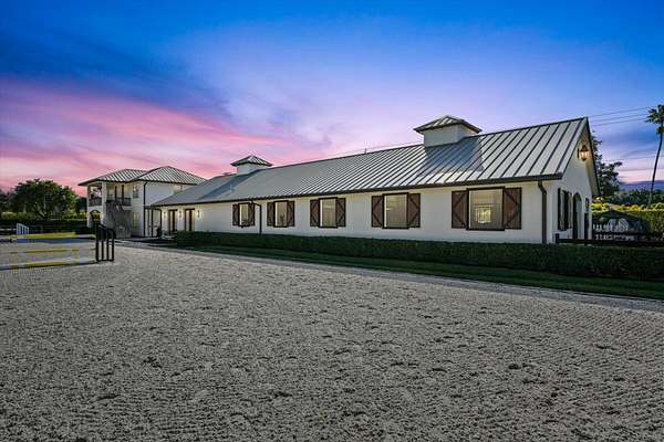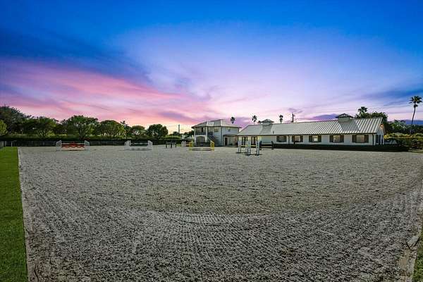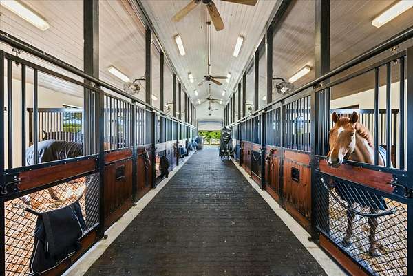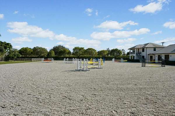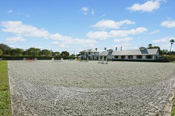 Exceptional Equestrian Estate in Saddle Trail Park, this 2.45-acre, high-and-dry farm is a premier offering. Conveniently located on city water and less than 2,500 feet from WEF's entrance, this property is designed for the serious equestrian. The farm features 7 irrigated paddocks and a Wordley Martin constructed arena measuring 220'x130'. The barn is accessed through an electric-operated gate with a roadside apron, providing easy entry for tractor-trailers and ample space behind the barn for large truck and trailer parking. The state-of-the-art barn boasts: 12 stalls, each equipped w/ high powered fans. Room for temporary stalls in the auxiliary building. Four grooming stalls (three indoor, one outdoor). Three wash racks with hot and cold water.