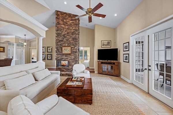 - Built-In Shelves, CTDRL/Vault Ceilings, Fireplace(s), French Door, Kitchen Island, Pantry, Split Bedroom, Volume Ceiling, Walk-In Closet