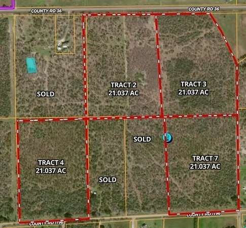Dividing 84 acres into smaller parcels, currently 21 acres each. Lots 2, 3, 4, and 7 are available. Excellent building sites well located.
