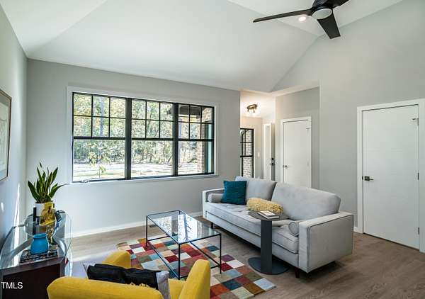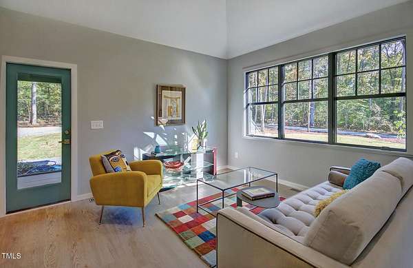 Lovely one-level living in brand new construction (2025 build) nestled on 3 wooded acres. Home comes fully equipped and luxuriously furnished. Water/Sewer/Natural Gas/Internet is all included in monthly rent. Ideal for Short Term 3+ monthly rental. All naturally bright rooms due to a South-East exposure and large windows! Living Room is centrally located and features include a mounted 65'' TV, vaulted ceilings w/fan, large storage closet. Full Bath has a 48'' floating vanity, medicine cabinet, comfort height toilet, tiled glass shower w/bench, rain shower plus hand-held fixture AND a 220v wall heater for ultimate comfort! Bedroom features large windows w/blackout curtains, fan, WIC, and private access to the Bathroom. Also pull-down Attic Storage. Eat-in Kitchen offers high-end SS appliances including a gas range, vented upscale exhaust hood, fridge, built-in MW, DW; Skylights, large pantry/coat closet. Nearby Laundry/Mud Room with W/D, storage, hanging rod and Garage access. Breakfast Area overlooks the front/side views through large windows. Shady Screened Porch has a fan, accent & recessed lighting; Overlooks the front/sides and connects to the front path leading to the front entrance. Over-sized 1 car attached Garage with 50A EV Charger. All brick exterior, Andersen casement windows, spray foam insulation, attic storage, natural gas, skylights, dead end flat paved peaceful road. Great for walking, jogging or biking. Just 10 minutes to UNC, shopping and I-40. Nearby Governors Village shopping center and Carolina Meadows are just a 2 min. drive.