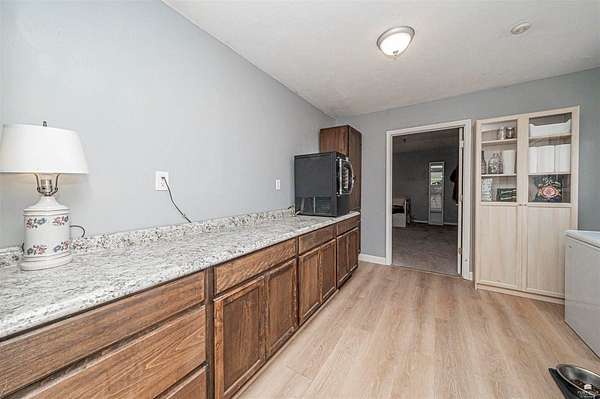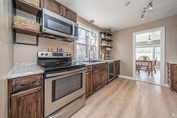 If you’ve been waiting for that perfect mix of country with the convenience of town - this is it. Sitting on 2.4 wooded acres right on the edge of town, this property gives you space, privacy, and room to breathe without giving up location. This home offers 3 bedrooms (1 non-conforming) and 2 bathrooms with a layout that gives you options. The oversized back bedroom could easily be split into two rooms or turned into the ultimate hangout space. Natural light pours throughout the home, giving it a warm, inviting feel from the moment you walk in. Outside, you’ll find a 3-car garage/shop, an adorable playhouse that’s perfect for kids, grandkids, or even your private workout space. Properties like this don’t come up often -acreage, updates, outbuildings, and location all in one. Don't miss out on this one!