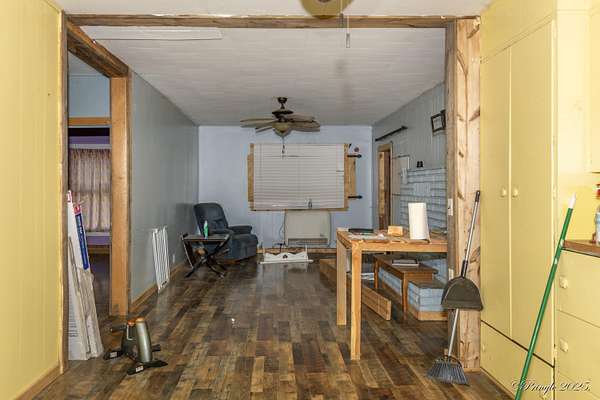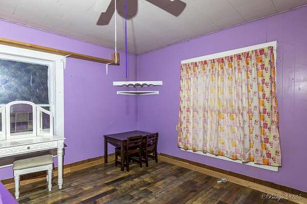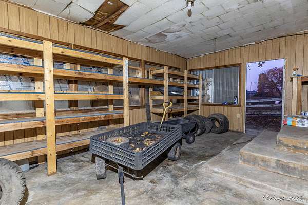 Est $954/moA hobby farm waiting for someone to add their personal touch. The property features perimeter fencing, a large barn, an outbuilding that was used for a chicken coop and grain storage, two additional outbuildings along with a concrete slab perfect for building a shop. The split layout allows for privacy with a large master suite with a garden tub. The property also has an RV hook up.