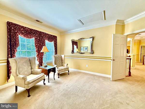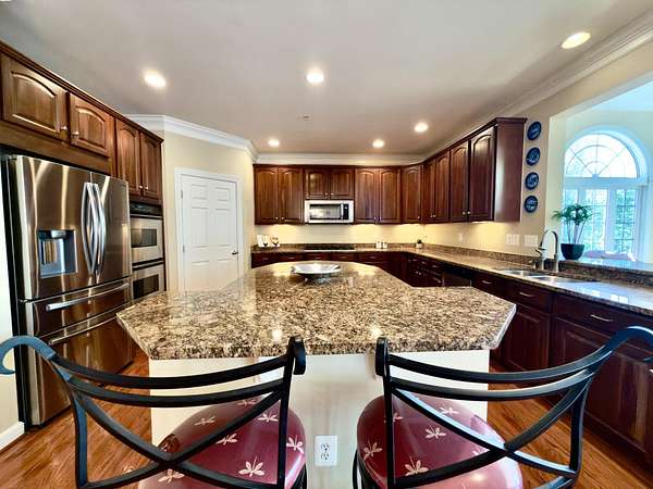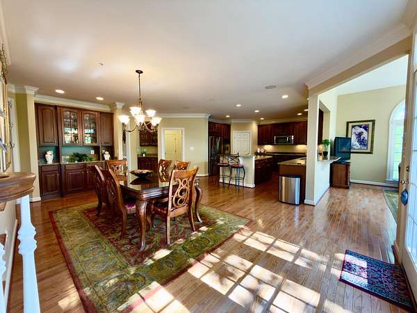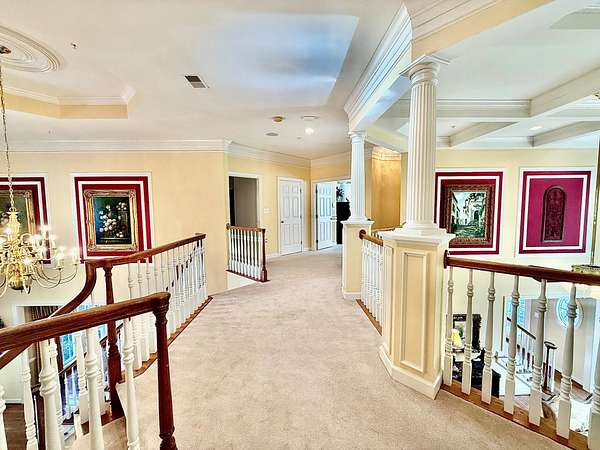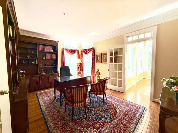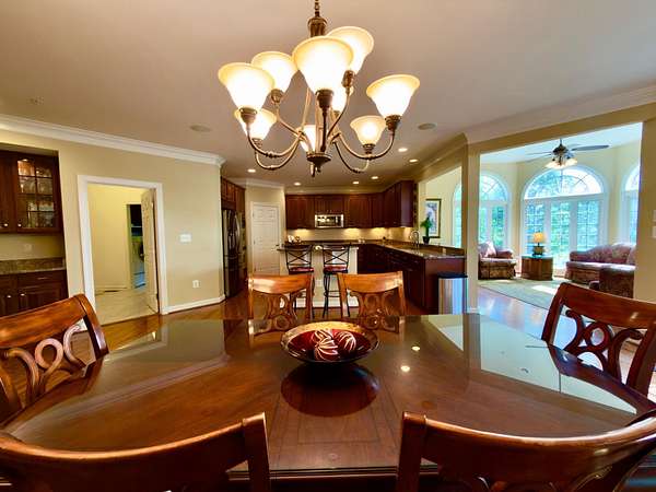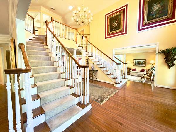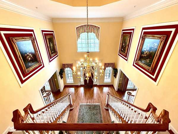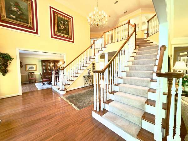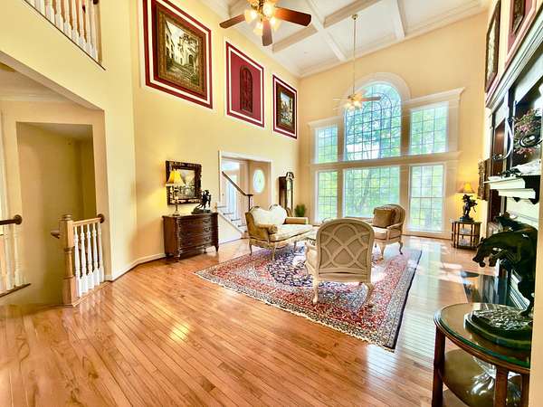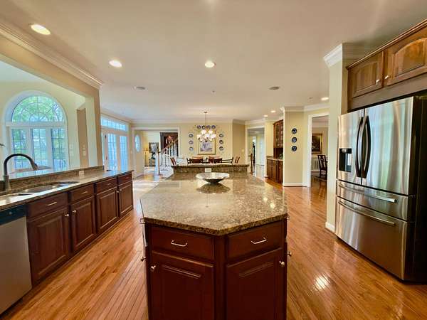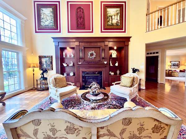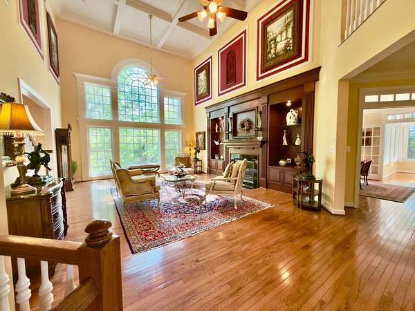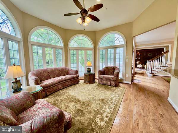 A rare opportunity to own a private estate setting in North Potomac, offering 2.5 acres of space, scale, and architectural presence just minutes from the C&O Canal and within easy reach of Washington, DC. This custom built residence is defined by grand proportions and timeless design. A stately brick exterior, circular driveway, and mature landscaping create a strong arrival, while hardwood floors, soaring ceilings, and Corinthian columns carry that sense of scale throughout the home. A two story foyer with dual staircases opens to formal living and dining rooms, while a light filled conservatory provides a quiet, sunlit retreat. The gourmet kitchen features granite countertops, custom cherry cabinetry, high end stainless steel appliances, and a large center island, flowing into a bright morning room with expansive windows overlooking the property. The two story great room offers a coffered ceiling, a large window, and a gas fireplace with custom built ins, creating a central gathering space. A private library completes the main level. Upstairs, the primary suite offers a spacious retreat with tray ceiling, sitting area, and a large walk in closet. The primary bath includes a soaking tub, dual vanities, and a glass enclosed shower. Three additional bedrooms each include en suite baths and walk in closets. The walkout lower level provides flexible living space with a large recreation area, guest suite with a full bath and walk in shower, a second fireplace, wine storage, and additional space for future customization. Outdoor living includes a pool, gas grill, and a two tier stone patio and deck designed for both relaxation and entertaining. Convenient access to I 270, River Road, and the Capital Beltway, with shopping, dining, and everyday amenities nearby.