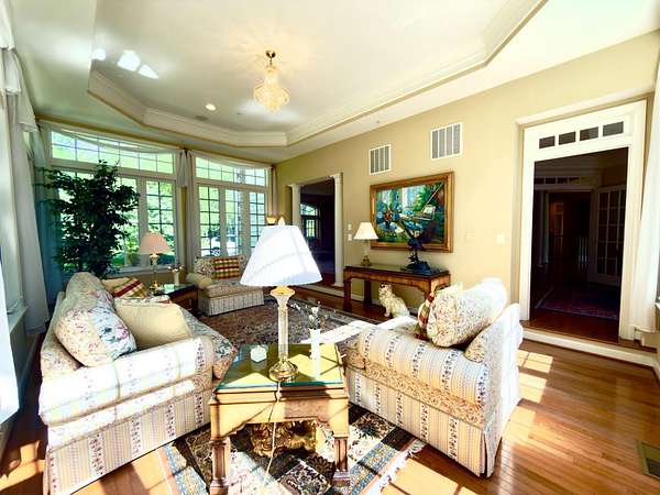 - Additional Stairway, Breakfast Area, Built-Ins, Butlers Pantry, Carpet, Ceiling Fan(s), Chair Railings, Crown Moldings, Curved Staircase, Dining Area, Double/Dual Staircase, Eat-In Kitchen, Family Room Off Kitchen, Formal/Separate Dining Room, Gourmet Kitchen, Island Kitchen, Laundry Chute, Open Floor Plan, Pantry, Recessed Lighting, Sound System, Sprinkler System, Stall Shower Bathroom, Table Space Kitchen, Upgraded Countertops, Walk-In Closet(s), Window Treatments, Wine Storage, Wood Floors