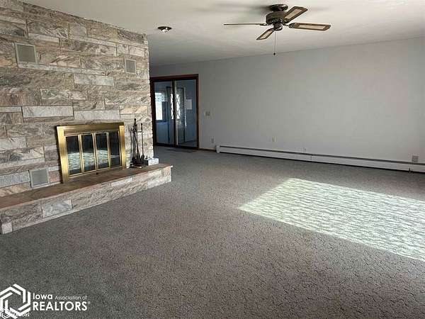 Charming Country Brick Ranch on 37.8 Acres, Pond, Outbuilding and Tillable Acres that are curringly being used for hay ground. This well maintained 1,496 sq. ft. home offers 3 spacious bedrooms and 2 baths, a roomy living room with a wood-brick surround firplace, a dining room, and a kitchen with space for a small table. Beautiful hardwood floors run through the bedrooms and hallway, and an additional heated room off the dining area provides flexibility for a home office or extra bedroom. Lets not forget about the extra space in the basement, with a large wood-brick surround firplace, a 3/4 bath, ample storage, and space for a second living area. The outbuilding is ideal for storage, a shop or additional garage space. The acreage includes mature fruit trees conveniently located just outside the back door, along with tillable ground offering owner-operated use or income potential through cash rent. This is a must-see acreage property.