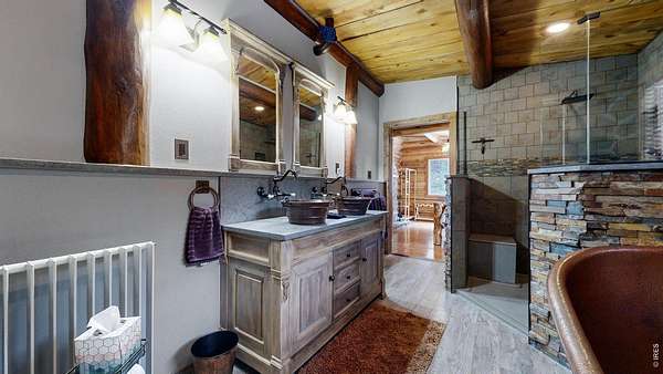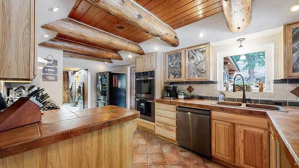 - Beamed Ceilings, Cathedral Ceiling(s), Natural Woodwork, Separate Dining Room, Walk-In Closet(s)