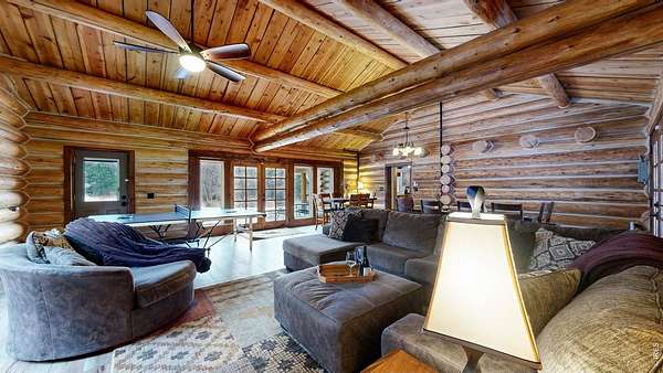 Whispering Brook ~ A Rare Mountain Retreat on 36+ Acres ~Welcome to Whispering Brook, a truly special mountain property where rustic charm meets modern comfort. Nestled on just over 36 acres of serene landscape, this stunning log home offers privacy, natural beauty, and an inviting atmosphere that's hard to find .A seasonal brook gently winds through the property, enhancing the peaceful setting and creating a soothing backdrop to everyday life. The home itself showcases exceptional craftsmanship with high-end finishes, warm wood tones, and a timeless lodge-style design. Inside, you'll find a thoughtfully designed layout featuring a cozy sitting area perfect for quiet mornings, a spacious main living area ideal for gathering, and a large recreation room that's ready for game nights, entertaining, or hosting guests. Whether you're relaxing or celebrating, this home offers space for every occasion .Step outside and unwind in the hot tub, where you can soak under the stars while taking in the unique rock formations that frame the landscape-an experience that truly captures the magic of mountain living. Currently operating as a successful short-term rental, Whispering Brook presents an excellent investment opportunity. While a new owner would need to work with the county regarding short-term rental licensing, the property's proven history makes it an attractive prospect. It would also serve beautifully as a private vacation home or personal retreat.