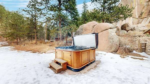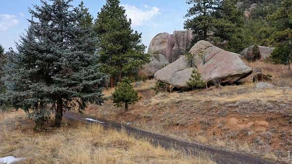 From Lyons, take Highway 36 west towards Estes Park. Travel 6 miles. The property will be on the left and massive boulders will be located next to the driveway. From Estes Park, take Highway 36 east towards Lyons. Travel 14.9 miles. The property will be on the right and massive boulder will be located just past the driveway.