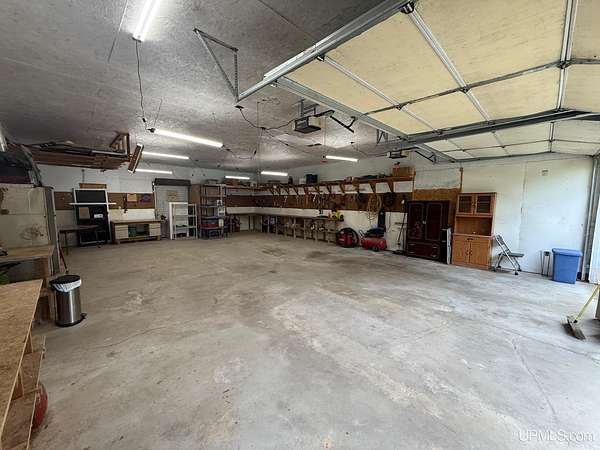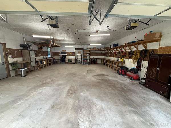 Turn-key 2-bedroom, 1-bath retreat situated on two parcels with a combined 35 wooded acres just north of Newberry. Located on a year-round county road with convenient access to ATV, ORV, and snowmobile trails, this property is ideal for recreational use or year-round living. The well-designed floor plan features a spacious entry, open living area, and split-bedroom layout for added privacy. A sitting area off one bedroom leads to an enclosed porch currently utilized as additional sleeping space. Whole House Generator Included! The large, detached garage provides excellent storage and workspace, with ample parking for multiple vehicles and toy haulers. Enjoy the peaceful setting from the backyard fire pit area, which opens to the surrounding woods. There is road frontage on M123 with the driveway on CR450.