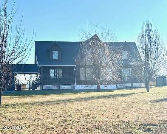 Est $2,227/moThis home is just lovely. Offering 3 beds and 2.5 baths on almost 3 acres. Metal roof that is just 2 years old. Storm Shelter in back yard. An exterior wood burning stove, and a willow tree and pear tree in the front yard. The office is just off main living area and has sliding glass doors to the back yard. The first floor of home has master bed and bath with walk in shower and large jetted tub. There is also a 1/2 bath on the main floor for guest. Don't wait to schedule your private showing. This is a beautiful home.